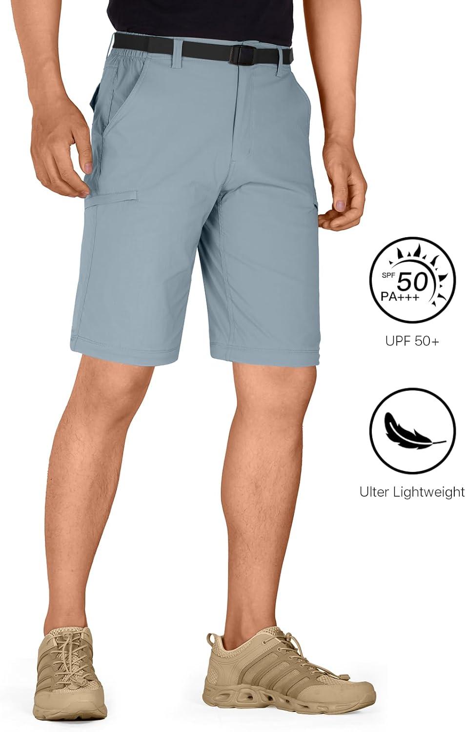 FREE SOLDIER Men's Outdoor Convertible Hiking Pants with Belt Lightweight Quick Dry Tactical Cargo Pants Nylon Spandex(Blue Gray)