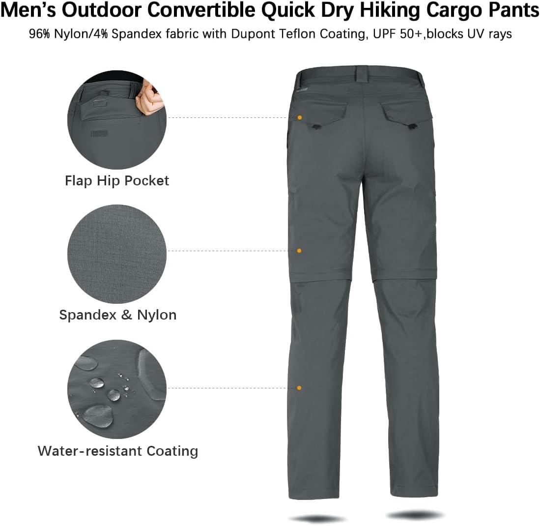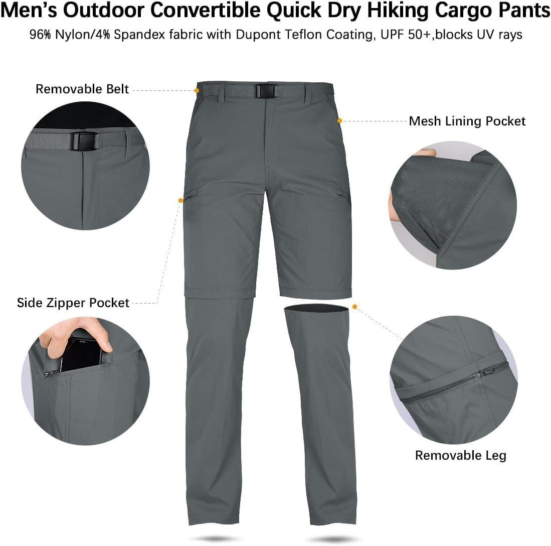 FREE SOLDIER Men's Outdoor Convertible Hiking Pants with Belt Lightweight Quick Dry Tactical Cargo Pants Nylon Spandex(Dark Gray)