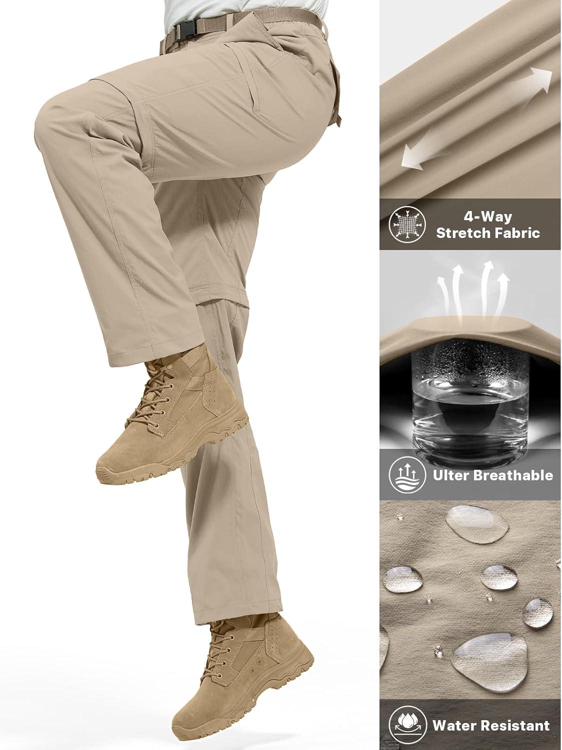 FREE SOLDIER Men's Outdoor Convertible Hiking Pants with Belt Lightweight Quick Dry Tactical Cargo Pants Nylon Spandex(Khaki)