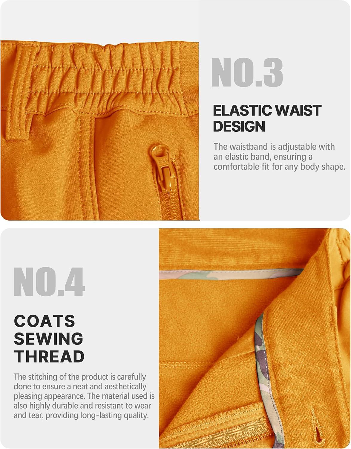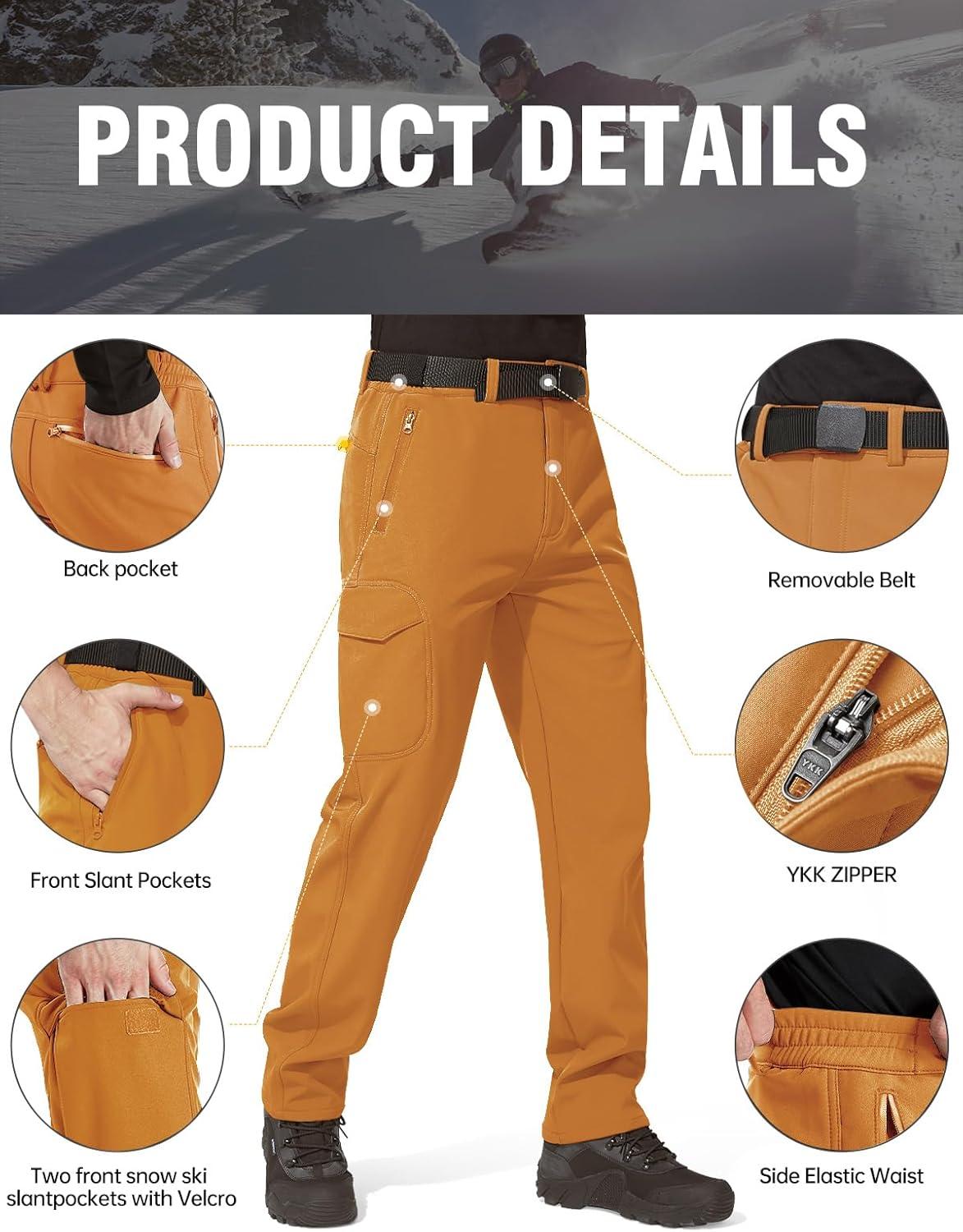 FREE SOLDIER Men's Outdoor Softshell Fleece Lined Cargo Pants Snow Ski Hiking Pants with Belt(Orange)