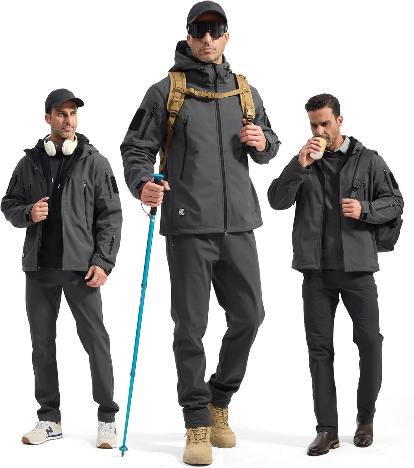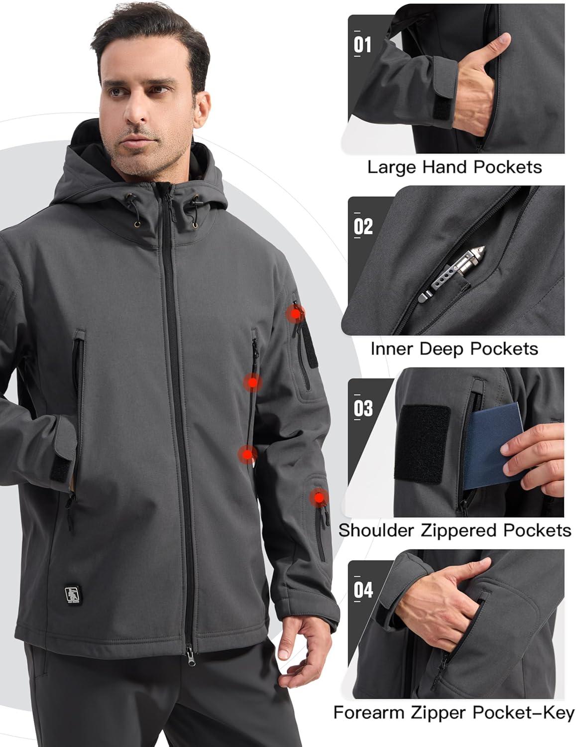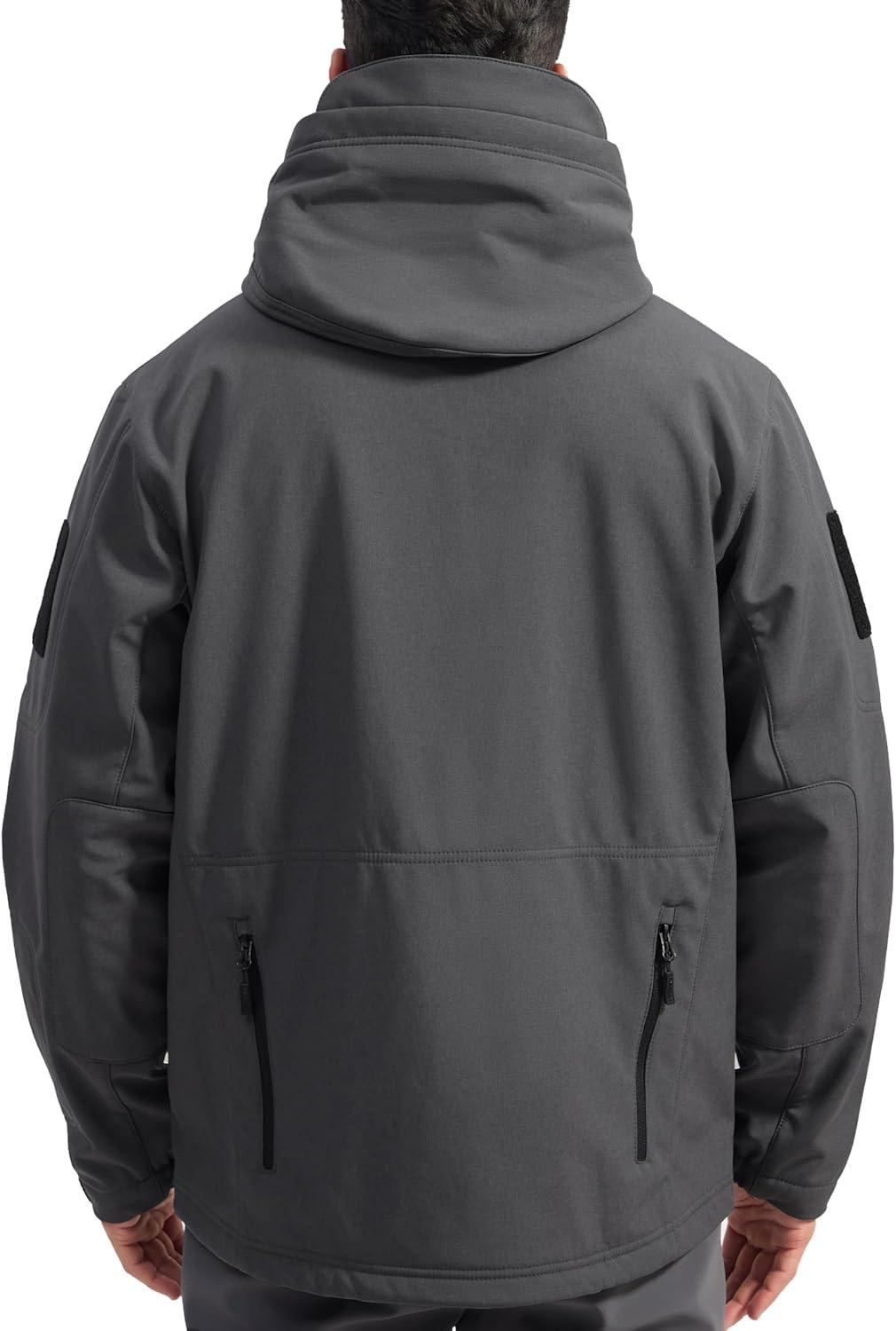 FREE SOLDIER Men’s Outdoor Waterproof Soft Shell Hooded Military Tactical Jacket(Gray Melange)