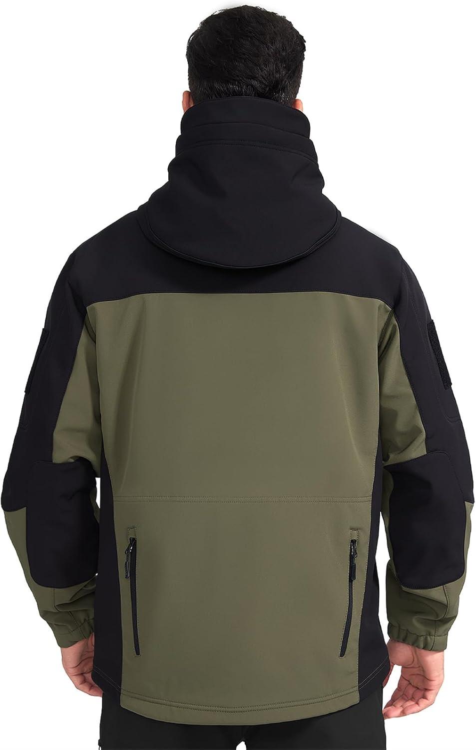 FREE SOLDIER Men’s Outdoor Waterproof Soft Shell Hooded Military Tactical Jacket(Green Black)