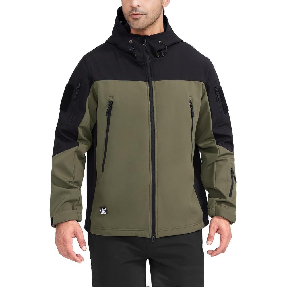 imageFREE SOLDIER Mens Outdoor Waterproof Soft Shell Hooded Military Tactical JacketGreen Black