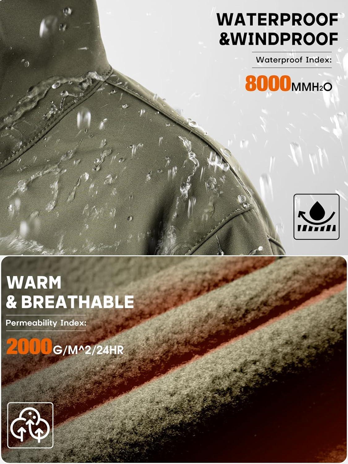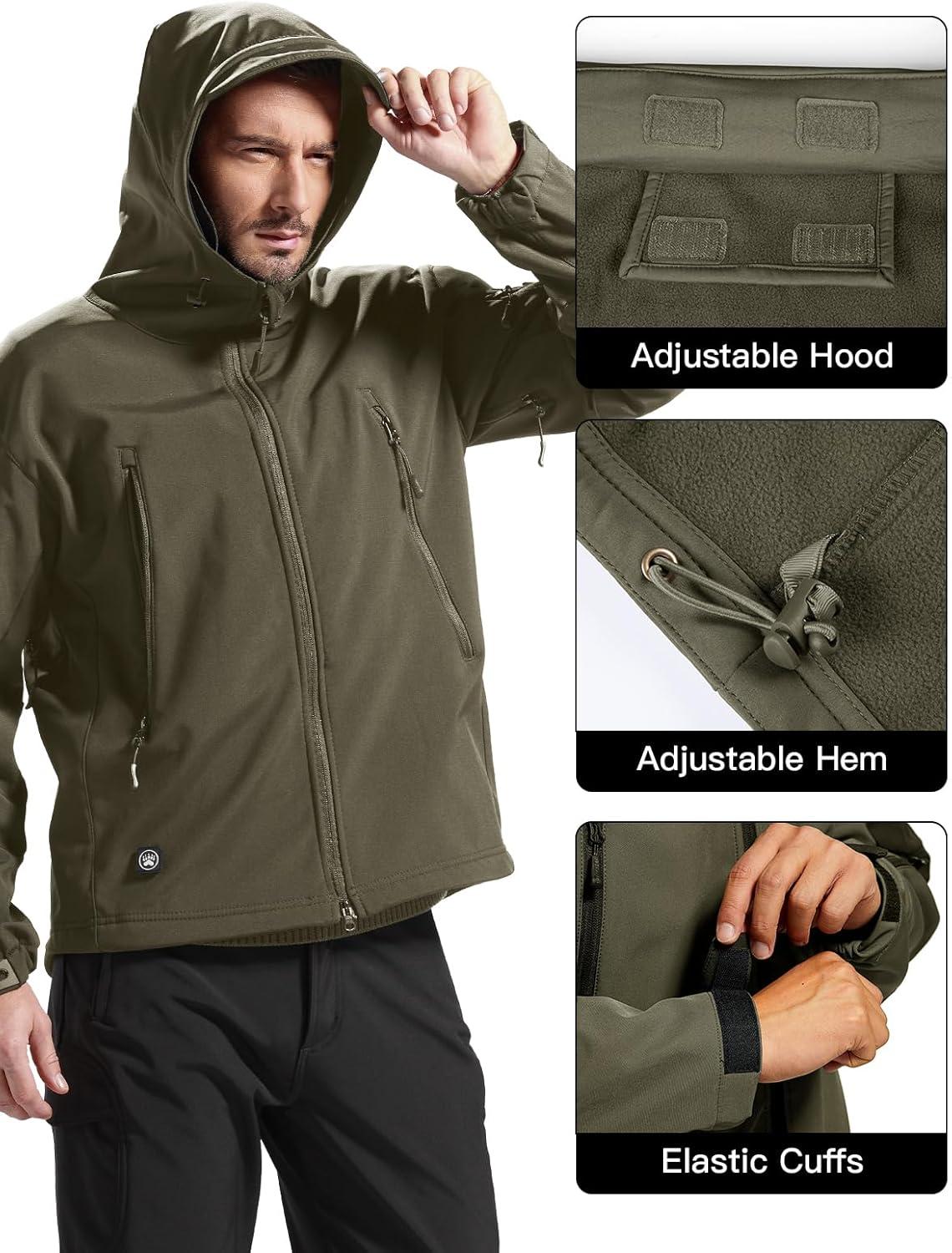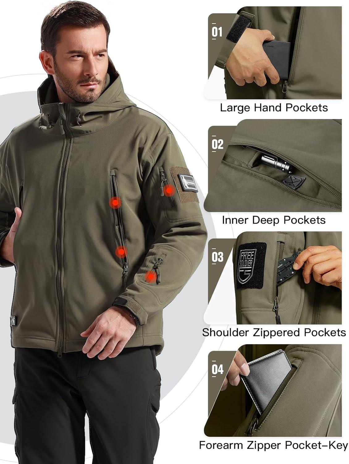 imageFREE SOLDIER Mens Outdoor Waterproof Soft Shell Hooded Military Tactical JacketGreen