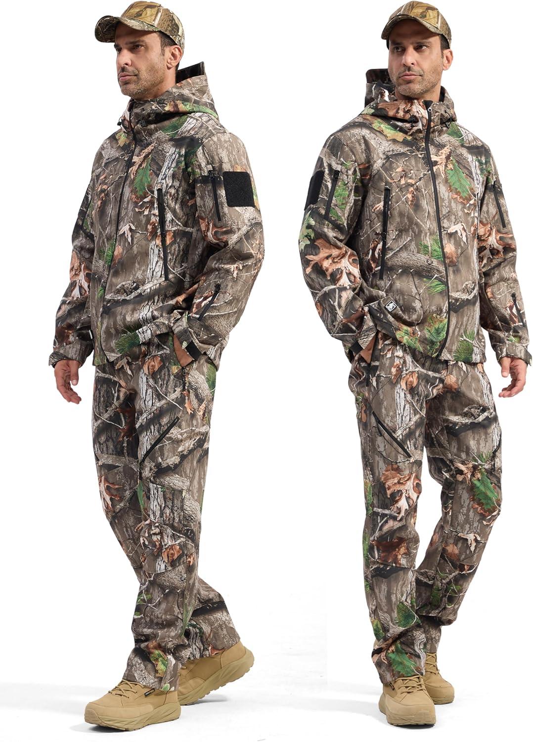 FREE SOLDIER Men’s Outdoor Waterproof Soft Shell Hooded Military Tactical Jacket(Hunting Camo)