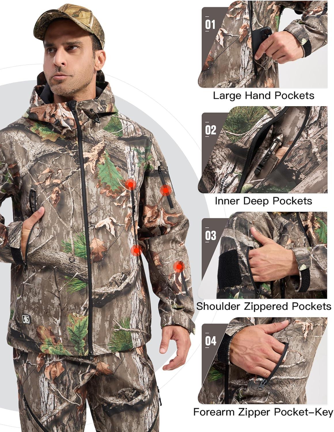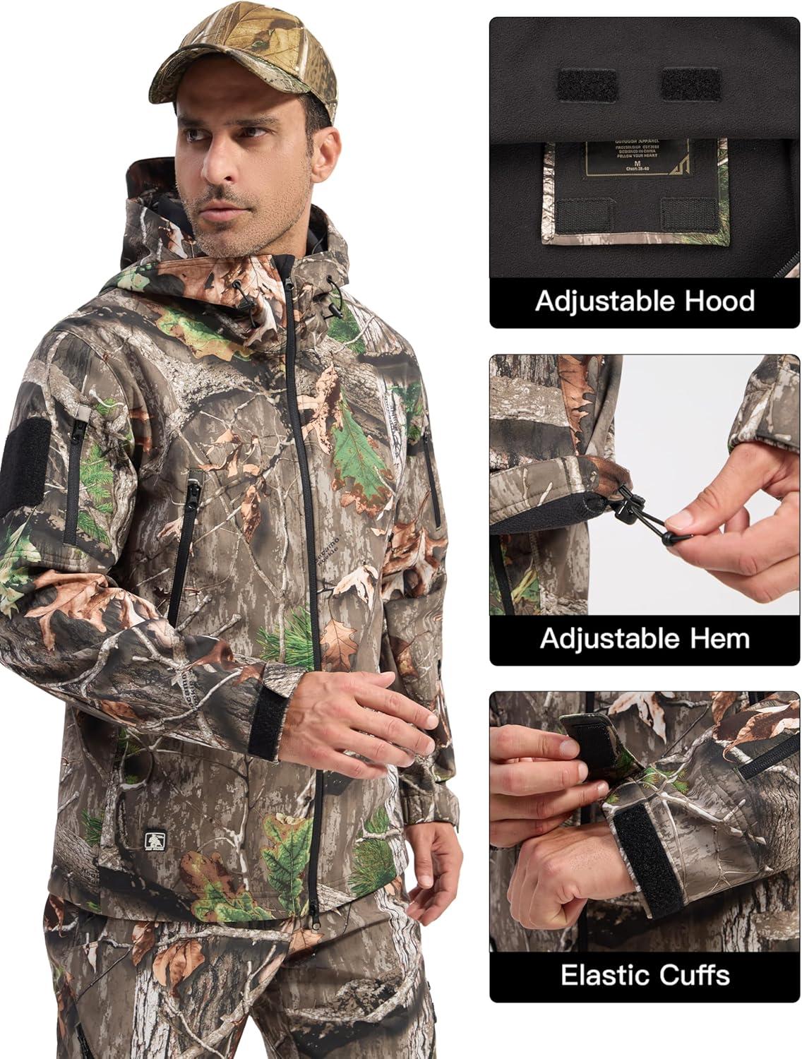 FREE SOLDIER Men's Outdoor Waterproof Soft Shell Hooded Military Tactical Jacket(Hunting Camo)