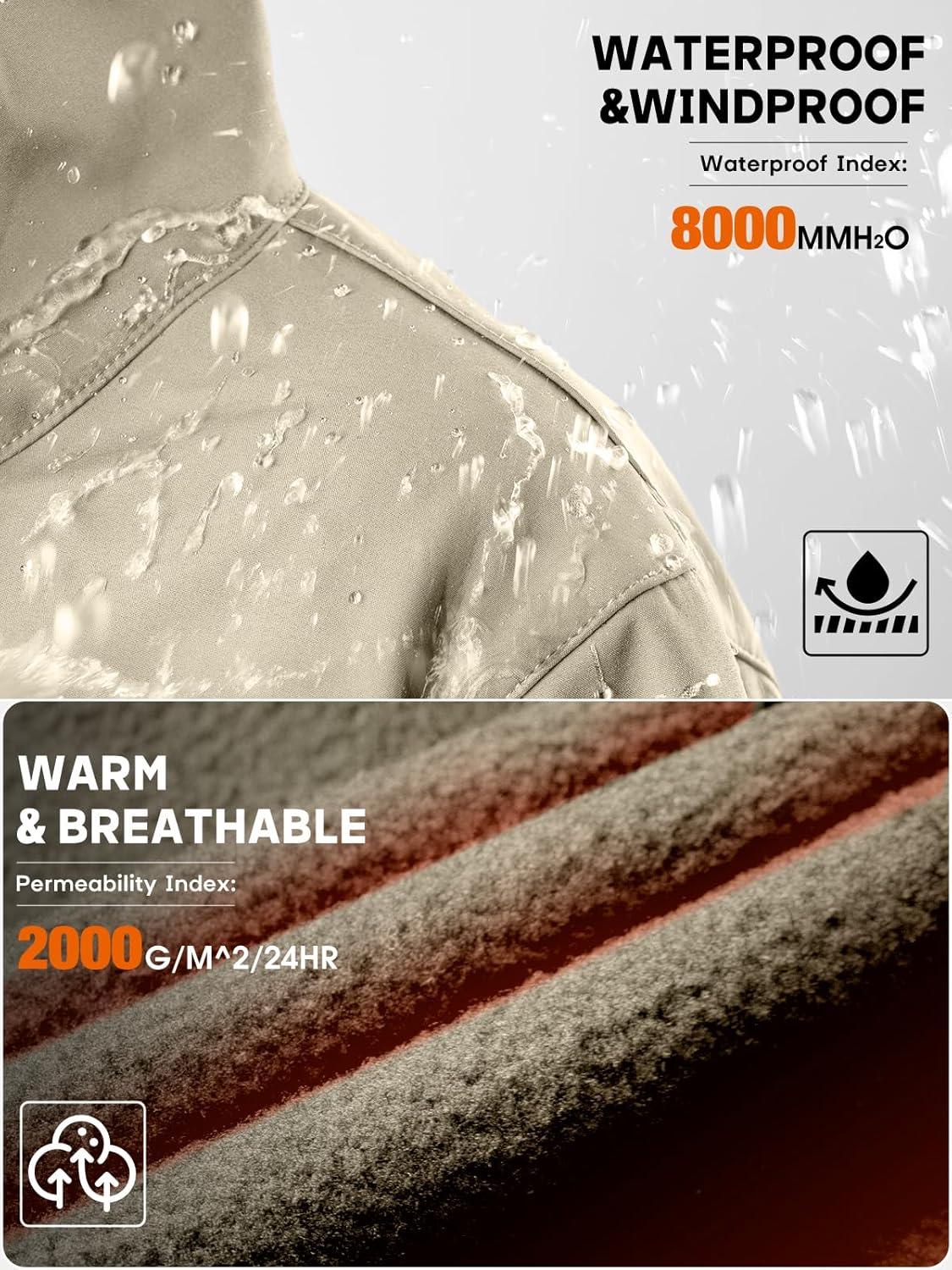 FREE SOLDIER Men’s Outdoor Waterproof Soft Shell Hooded Military Tactical Jacket(Khaki)