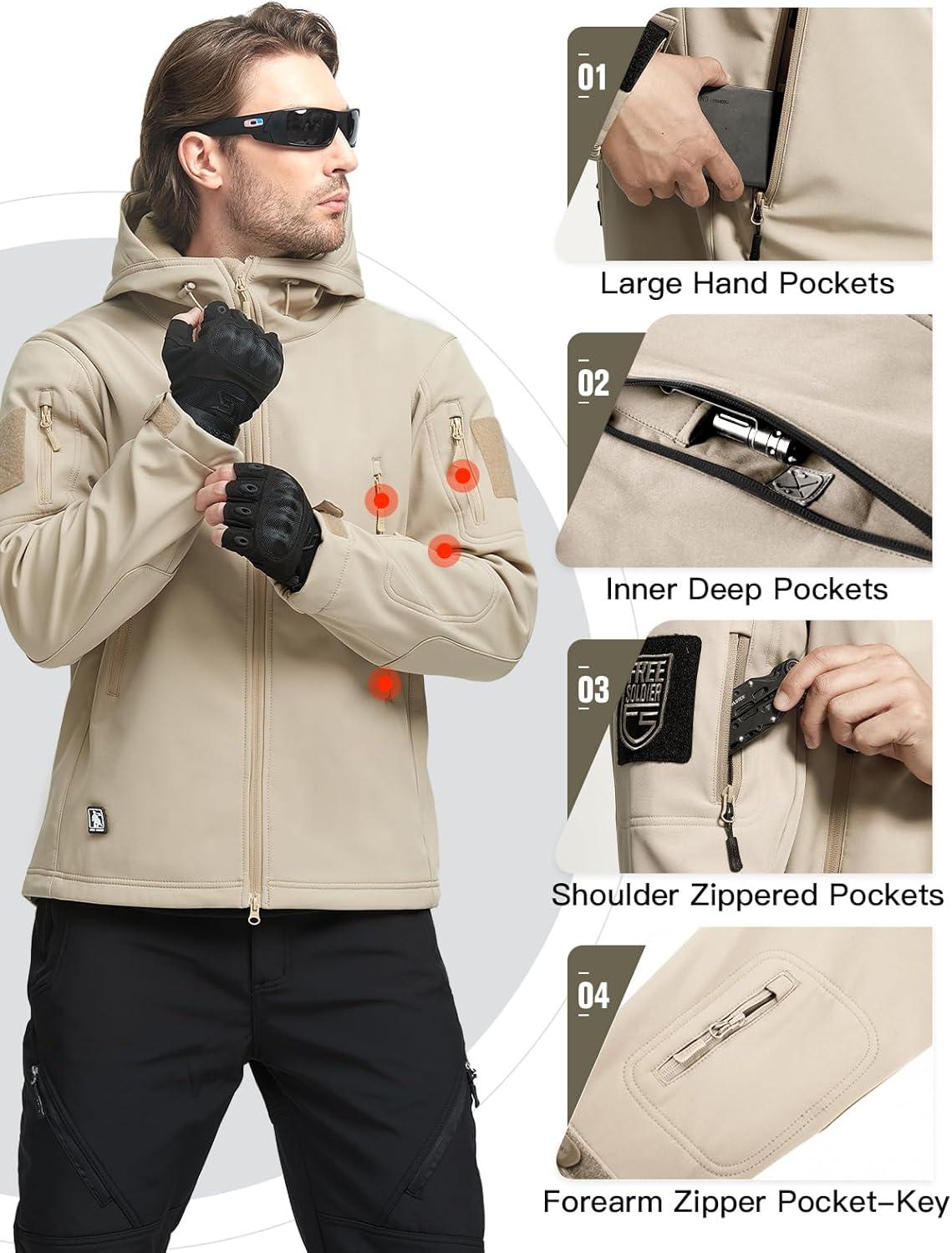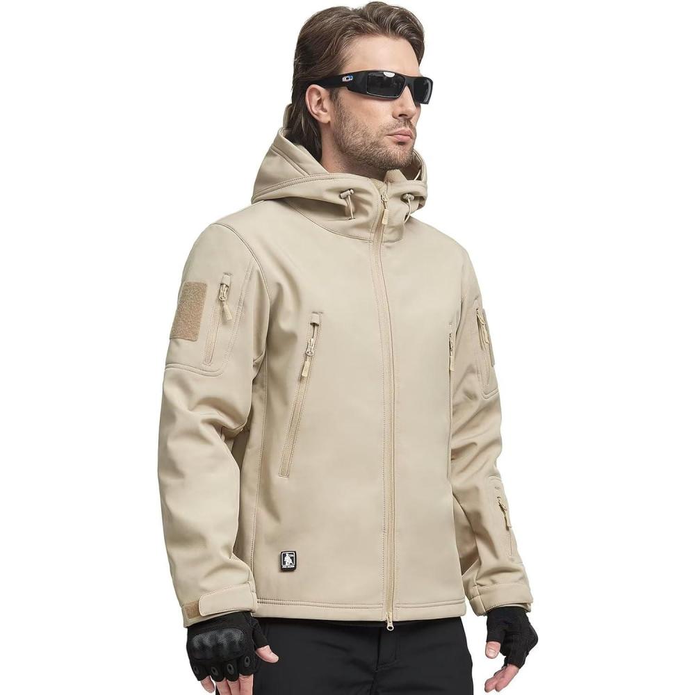 imageFREE SOLDIER Mens Outdoor Waterproof Soft Shell Hooded Military Tactical JacketKhaki