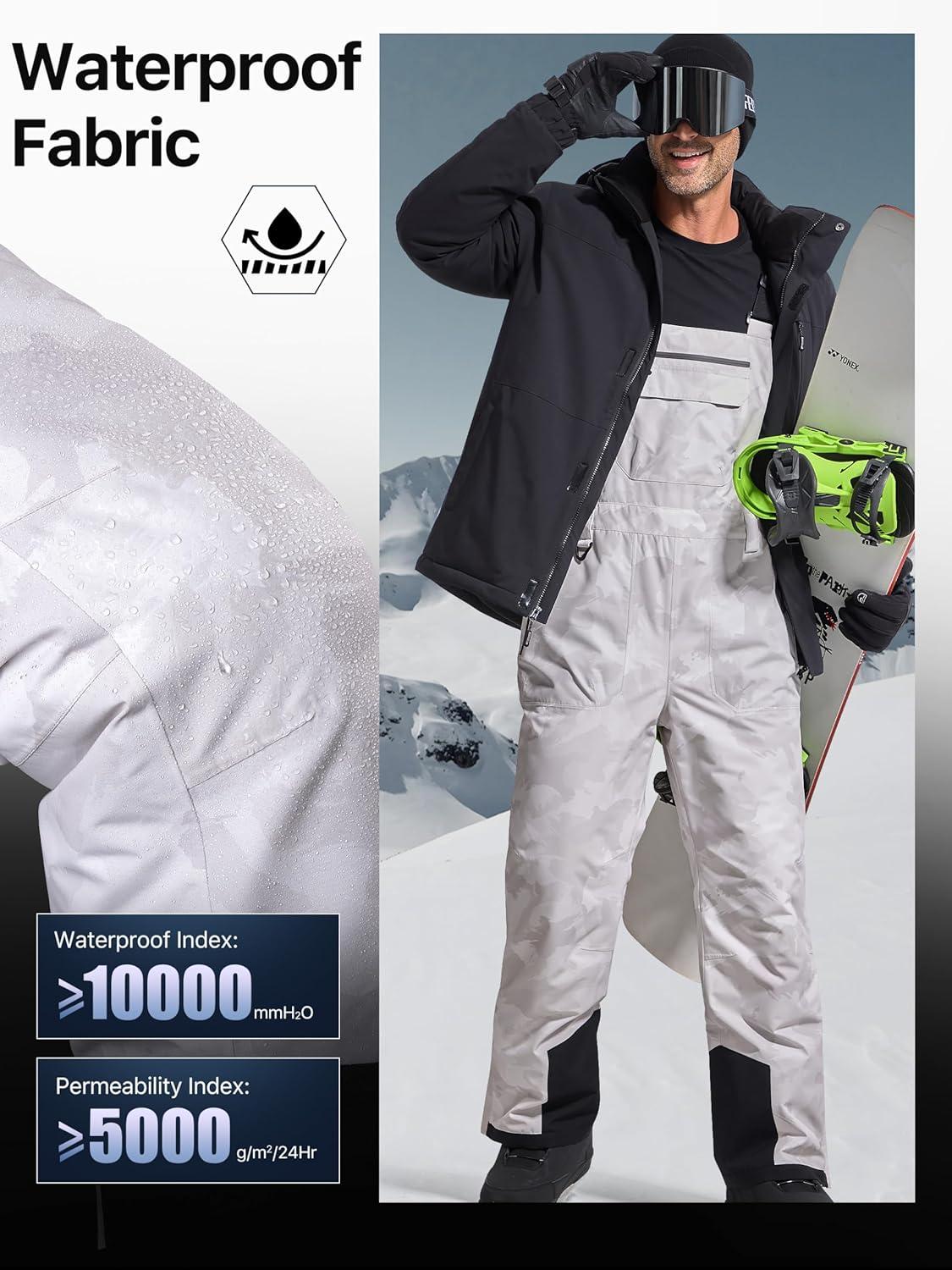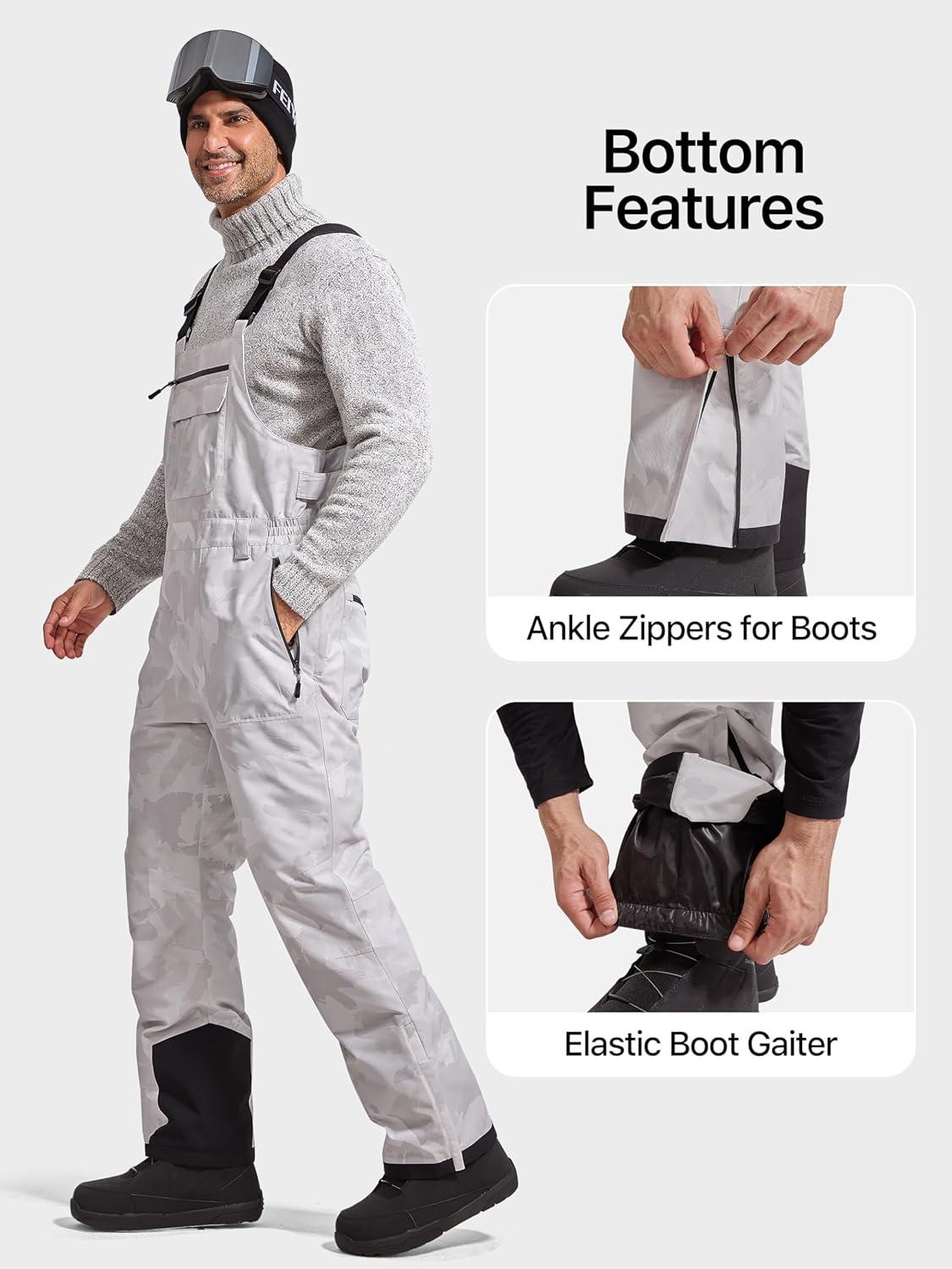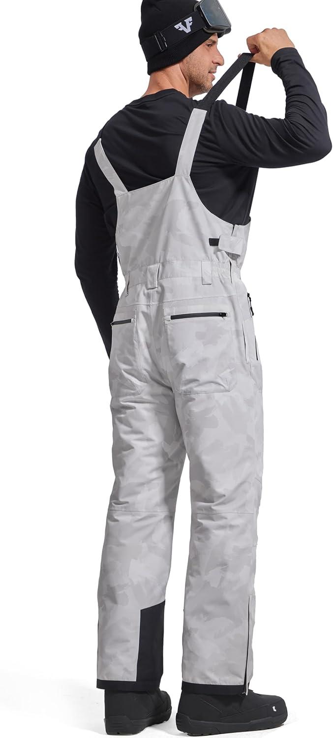 FREE SOLDIER Mens Snow Bibs Ski Pants Softshell Waterproof Insulated Warm Snow Pants Windproof Ski Bib Overalls(Camo White)