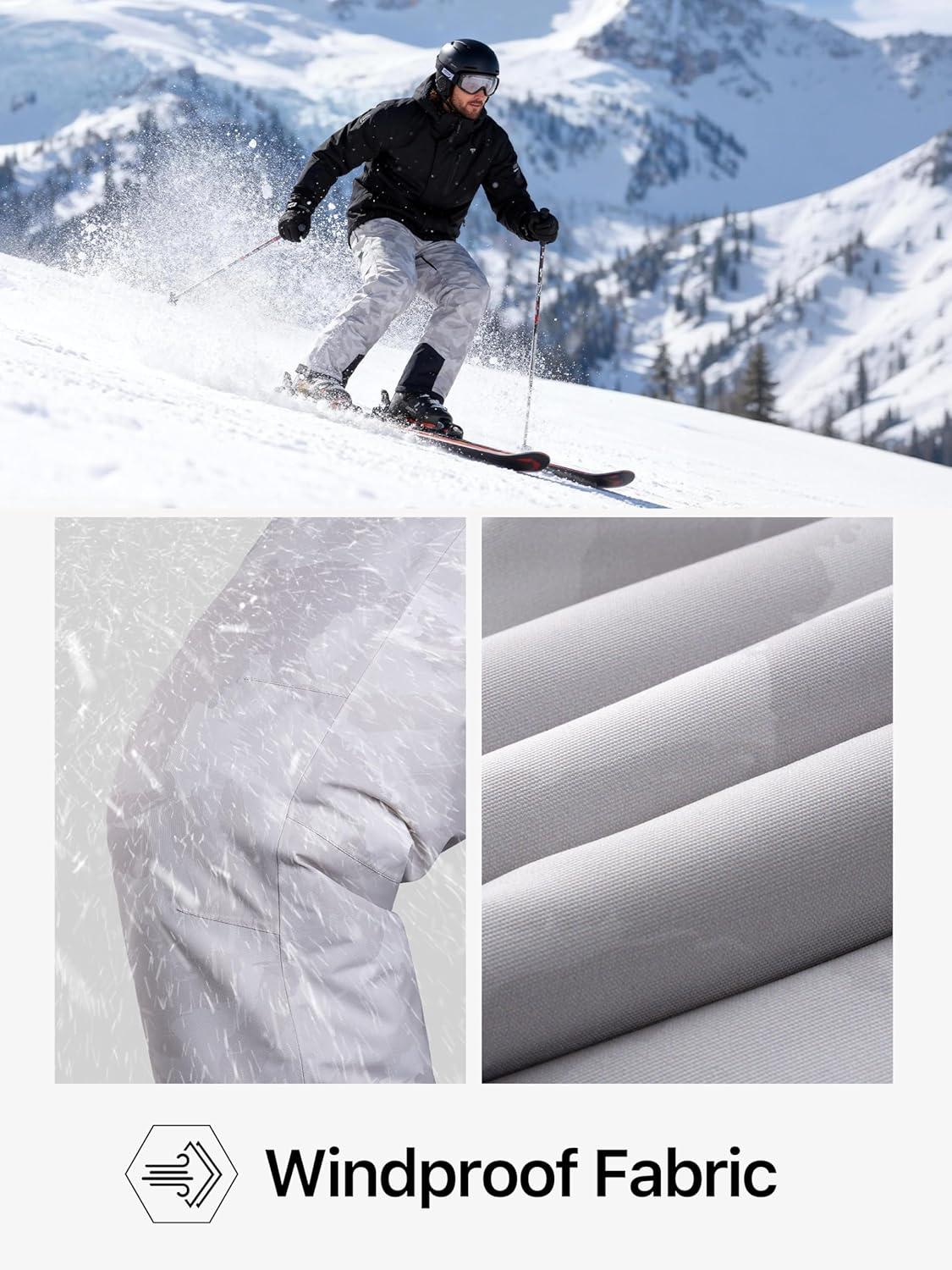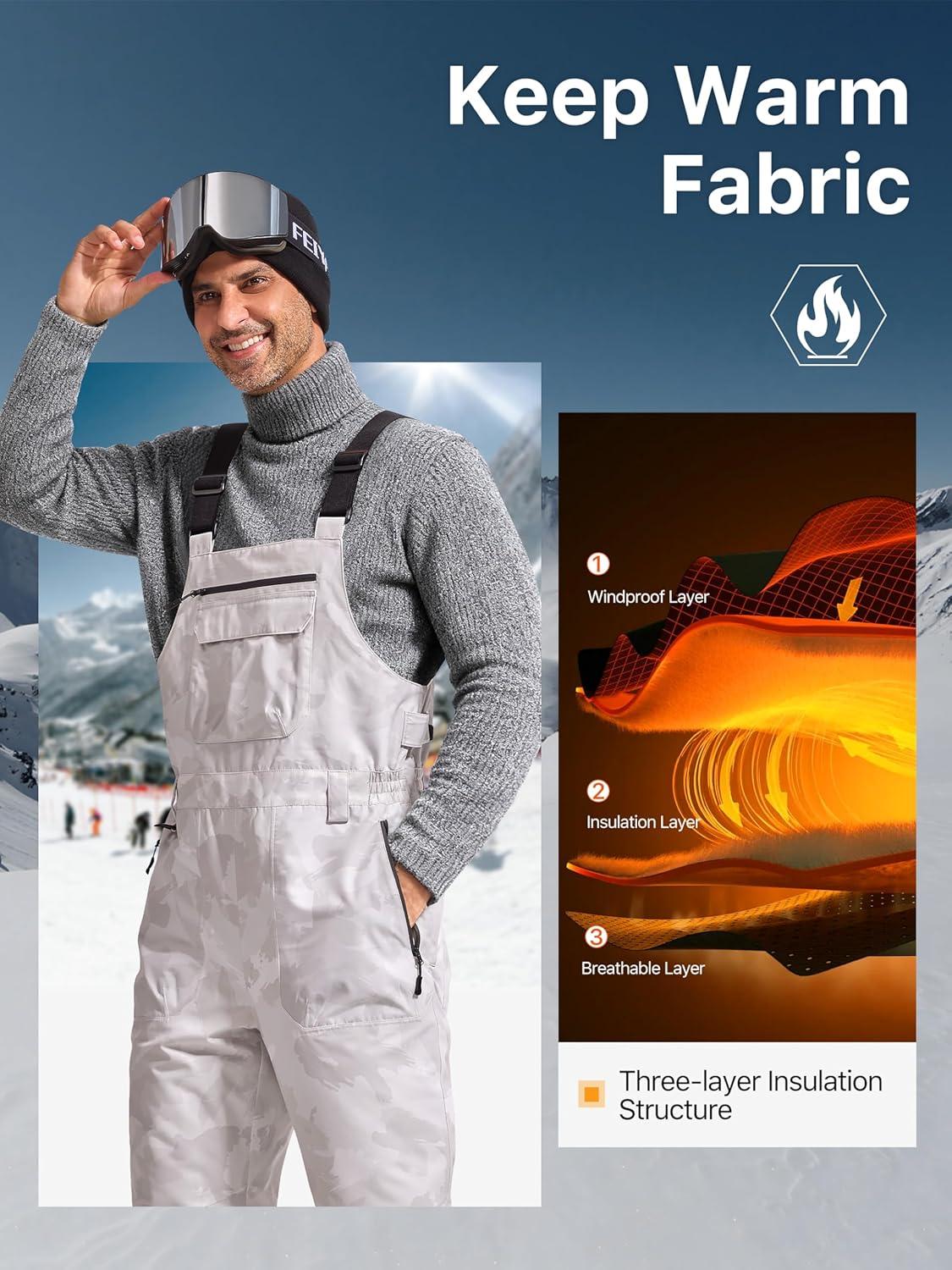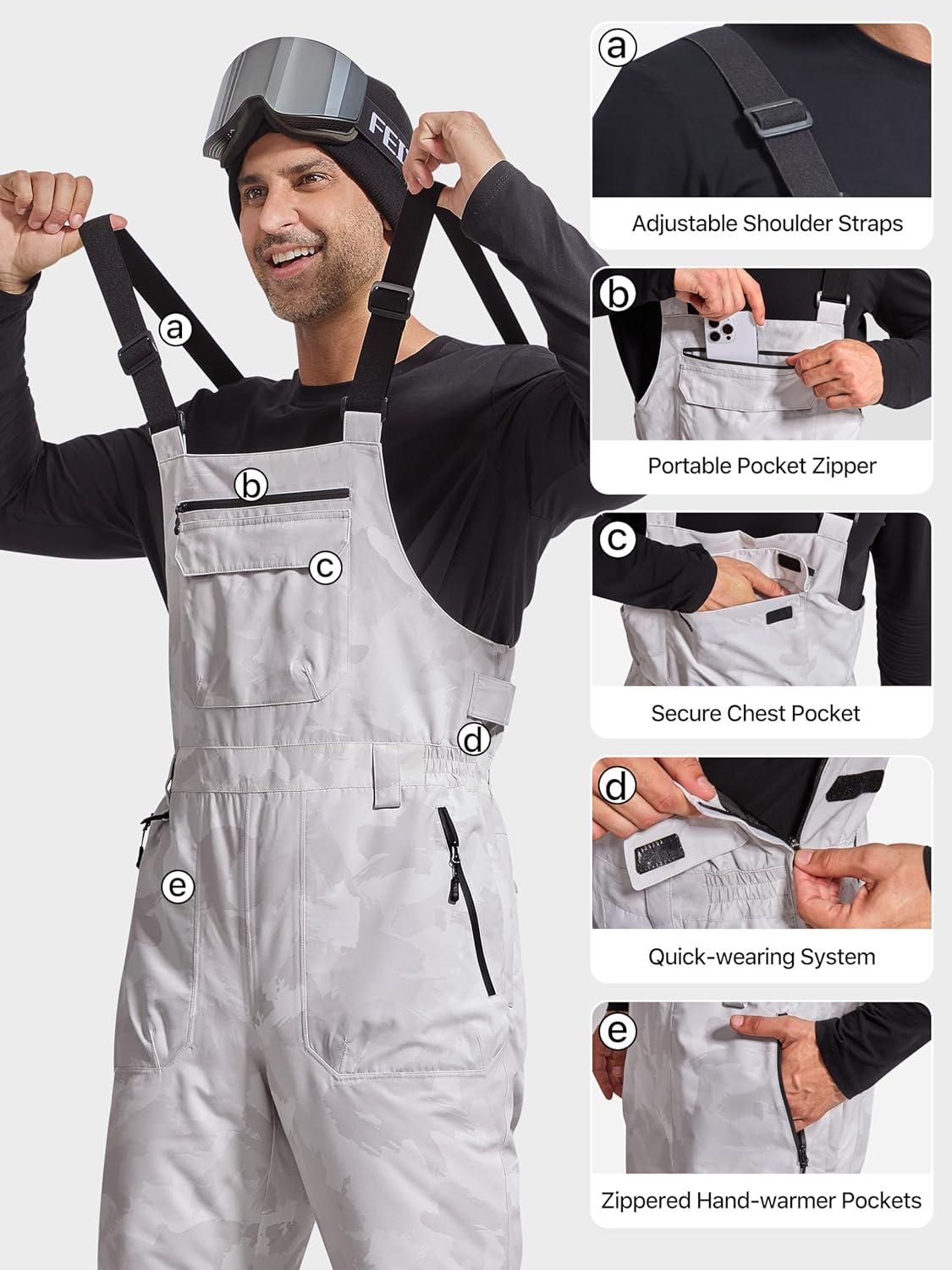 FREE SOLDIER Mens Snow Bibs Ski Pants Softshell Waterproof Insulated Warm Snow Pants Windproof Ski Bib Overalls(Camo White)