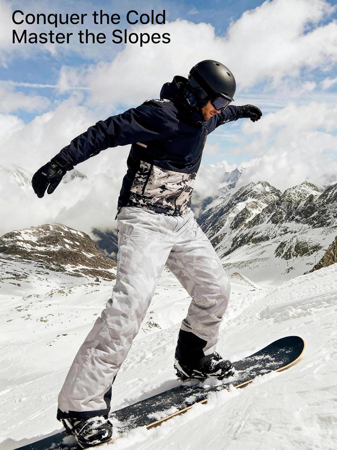 imageFREE SOLDIER Mens Snow Bibs Ski Pants Softshell Waterproof Insulated Warm Snow Pants Windproof Ski Bib OverallsCamo White