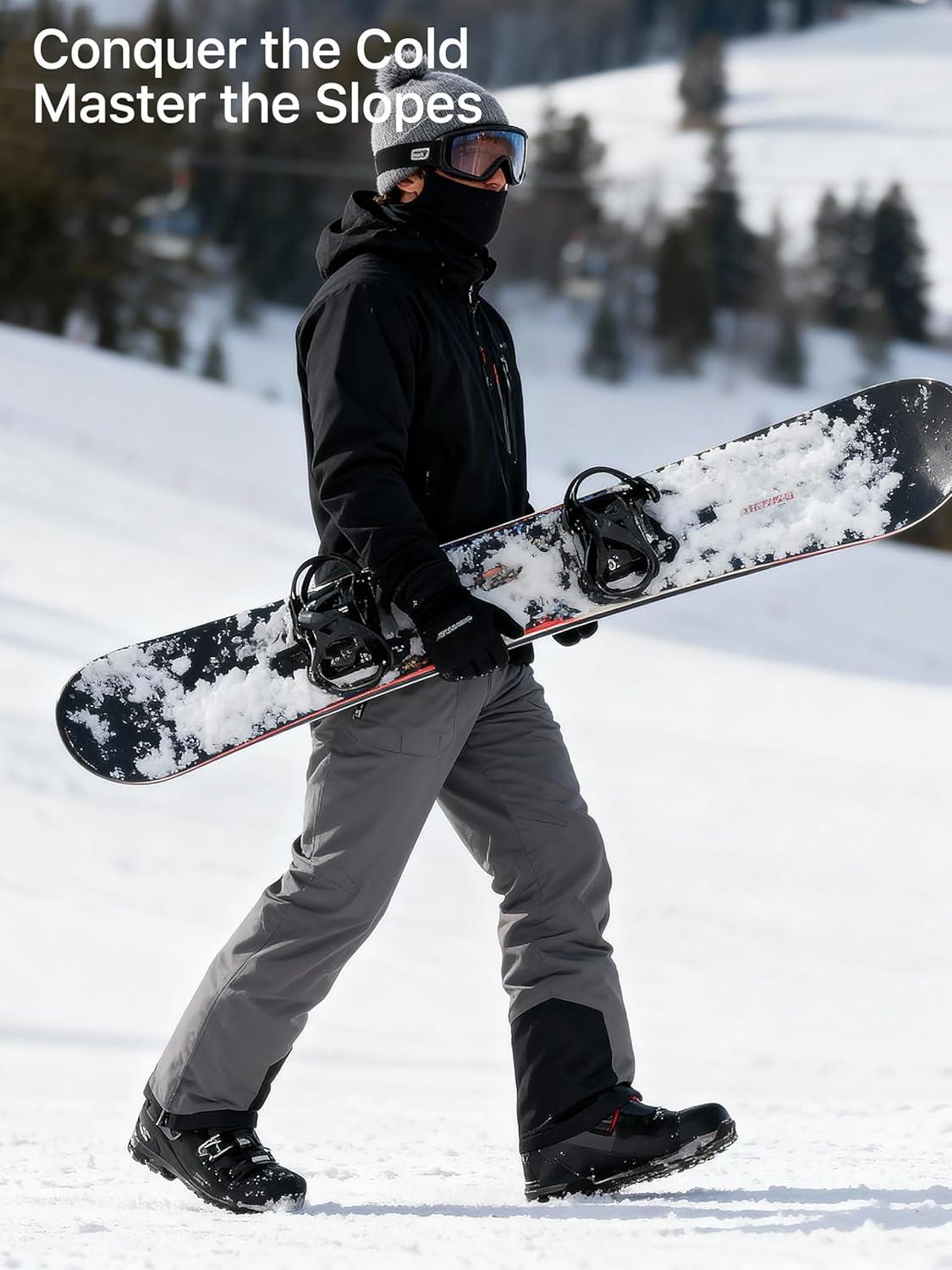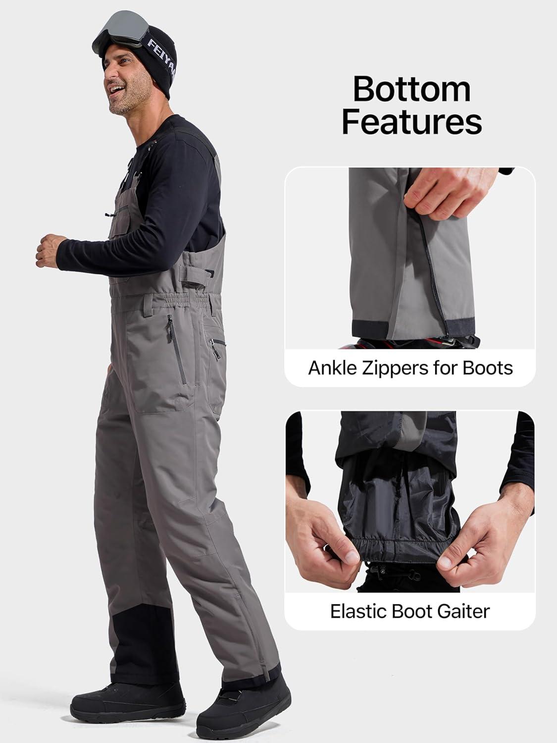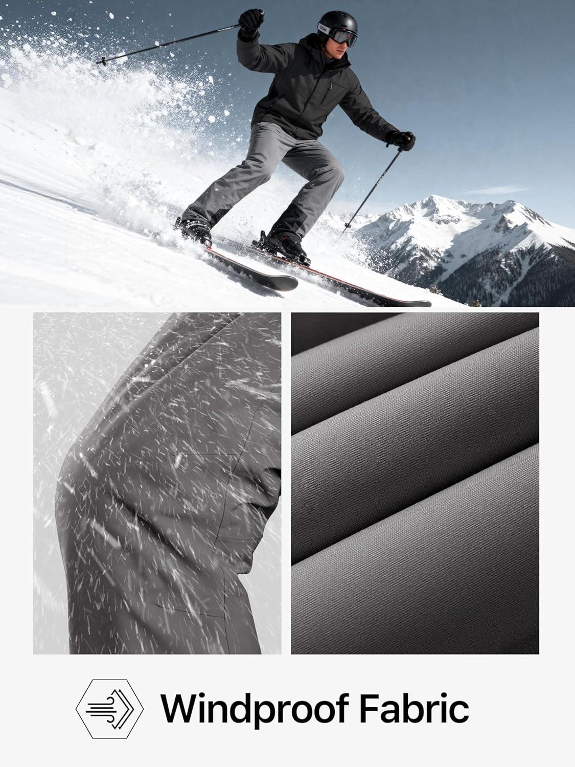 FREE SOLDIER Mens Snow Bibs Ski Pants Softshell Waterproof Insulated Warm Snow Pants Windproof Ski Bib Overalls(Gray)
