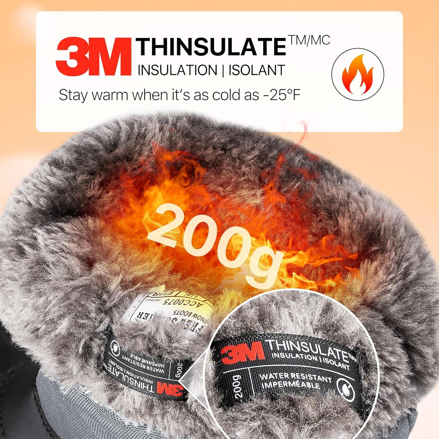 FREE SOLDIER Mens Snow Boots Insulated Waterproof Hiking Winter Shoes Nonslip Outdoor Ankle Cold Weather Boots with Warm Inner(Velvet Grey)