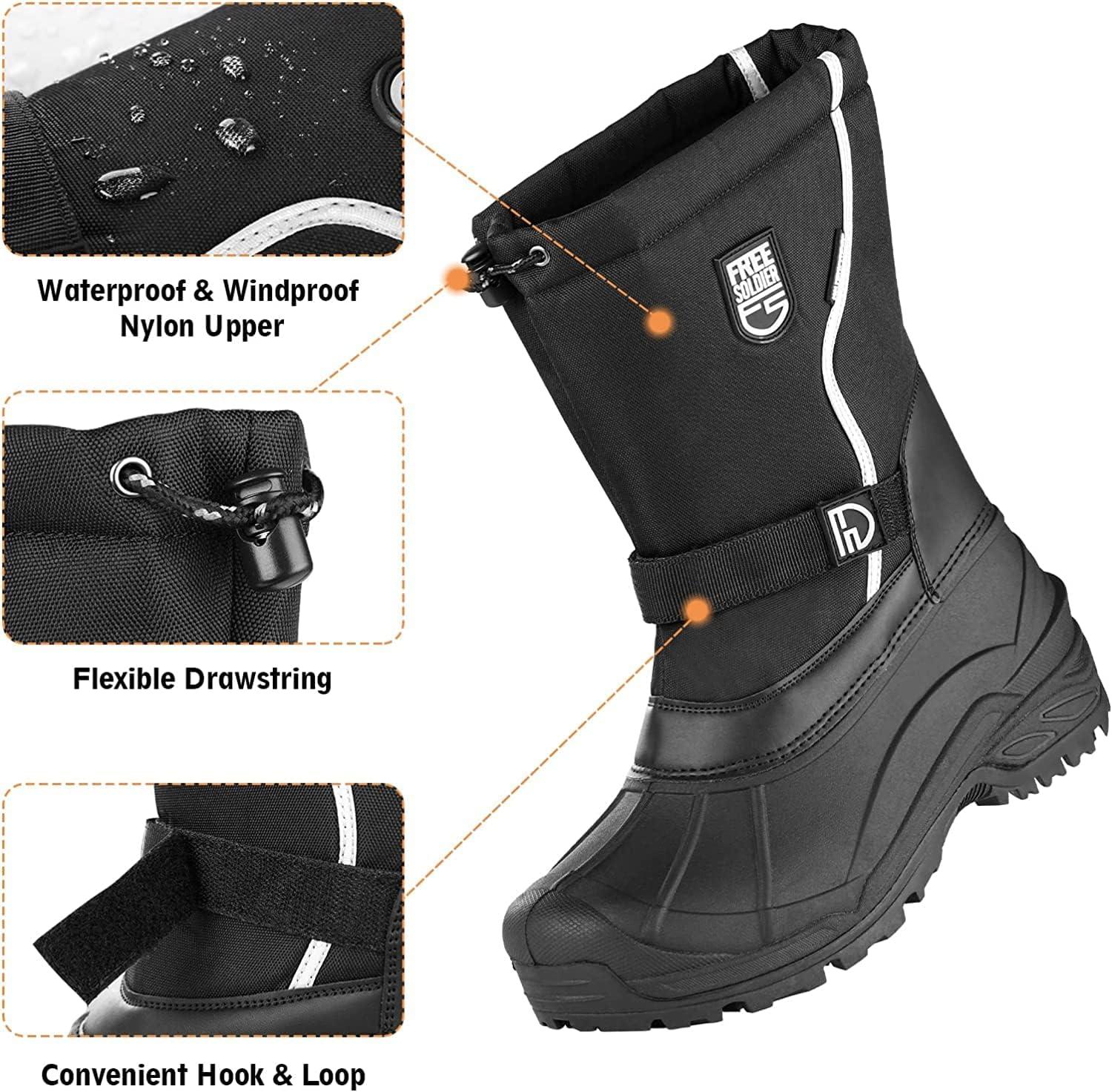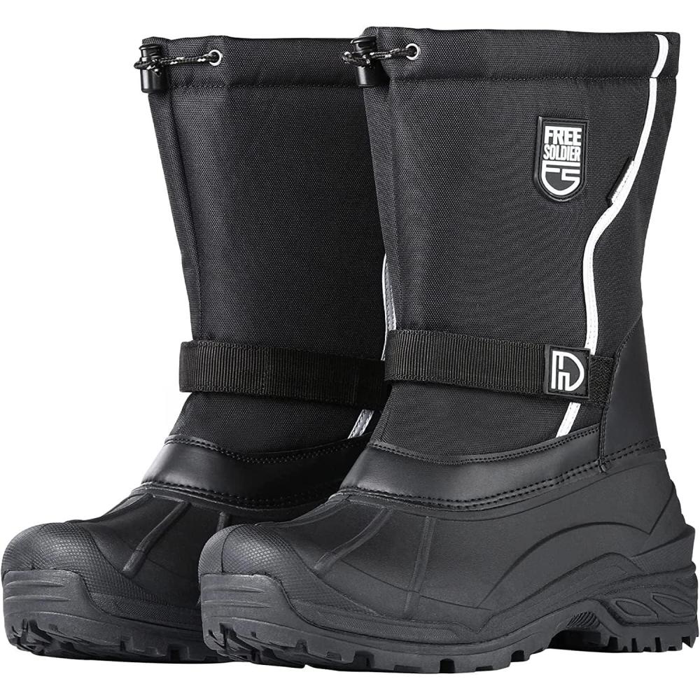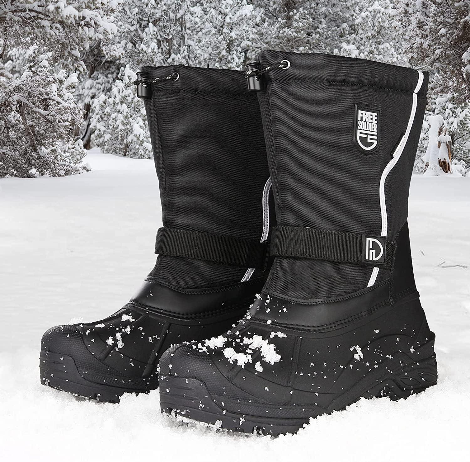 Nonslip: The FREE SOLDIER waterproof winter boots soles are thick rather than stiff for more comfortable wearing experience. And on the outsoles are full of various antiskid bumps, enhancing strong grip on diverse terrains and thus boosting snow shoes safeguarding capacity. Mens snow boots excellent nonslip performance provides security for your winter outdoor activities.