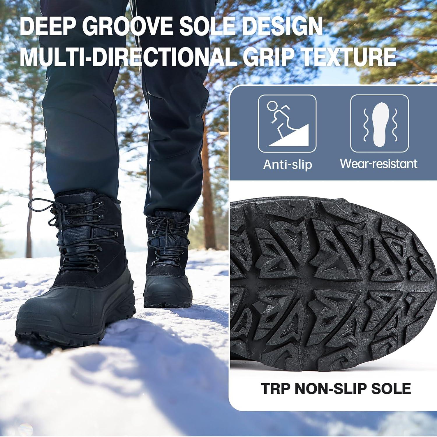 Perfect Indoor & Outdoor Winter Boots for Men: Efficient warm-keeping system, waterproof uppers and nonslip rubber soles make the snow boots for men a good choice for mens boots. Applicable for diverse activities, such as skiing, skating, snowmobiling, ice fishing, hiking, mountaineering, hunting, climbing, snowshoeing, etc. It can also be treated as work boots, casual boots, military boots. Decent Valentines day gifts for him.