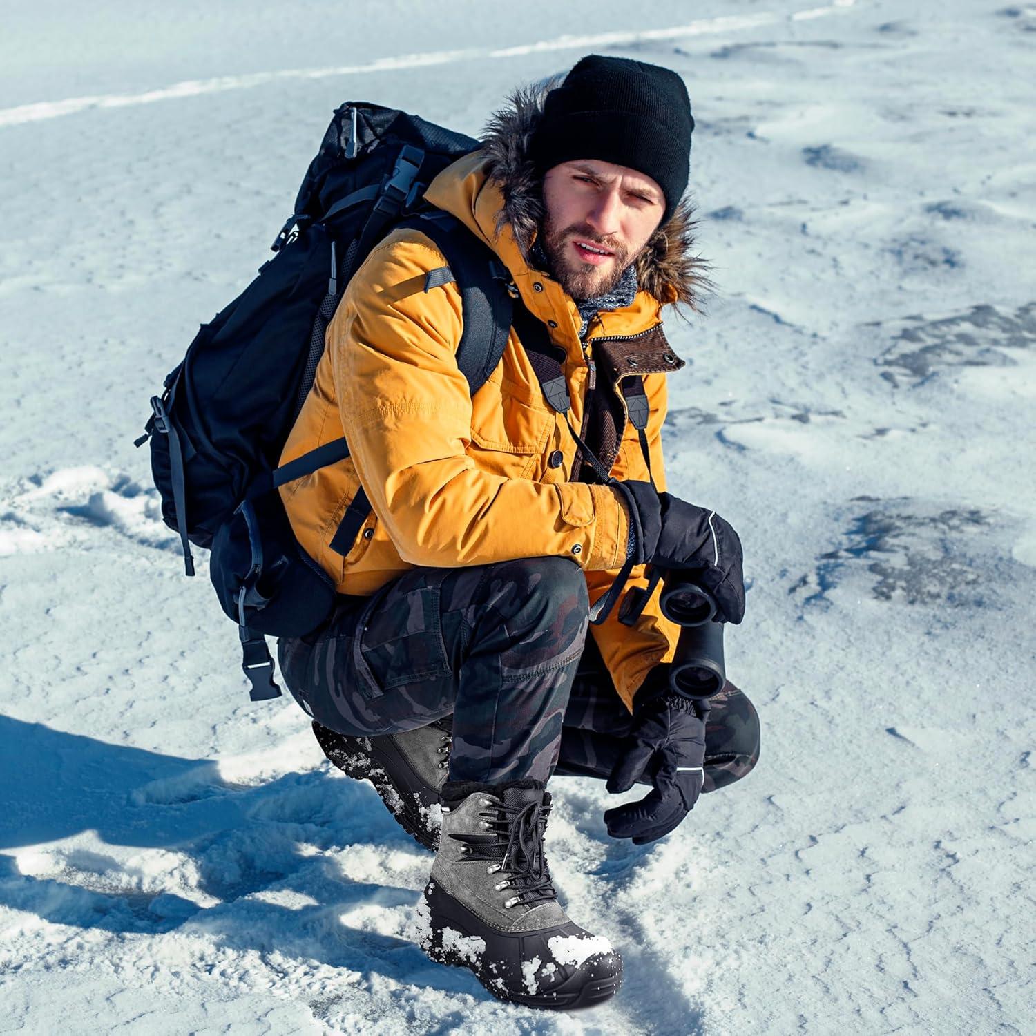 Perfect Indoor & Outdoor Winter Boots for Men: Efficient warm-keeping system, waterproof uppers and nonslip rubber soles make the snow boots for men a good choice for mens boots. Applicable for diverse activities, such as skiing, skating, snowmobiling, ice fishing, hiking, mountaineering, hunting, climbing, snowshoeing, etc. It can also be treated as work boots, casual boots, military boots. Decent Valentines day gifts for him.