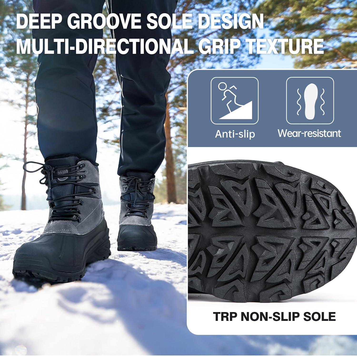 Perfect Indoor & Outdoor Winter Boots for Men: Efficient warm-keeping system, waterproof uppers and nonslip rubber soles make the snow boots for men a good choice for mens boots. Applicable for diverse activities, such as skiing, skating, snowmobiling, ice fishing, hiking, mountaineering, hunting, climbing, snowshoeing, etc. It can also be treated as work boots, casual boots, military boots. Decent Valentines day gifts for him.