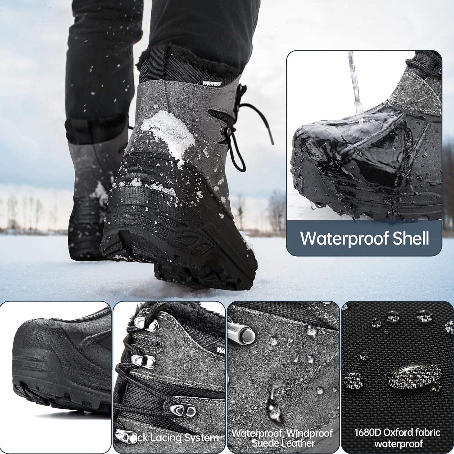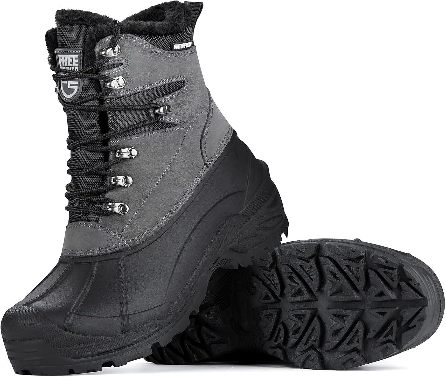 FREE SOLDIER Mens Snow Winter Boots for Men Warm Fleece Lining Winter Ski Shoes Waterproof Insulated Booties(Grey,12)
