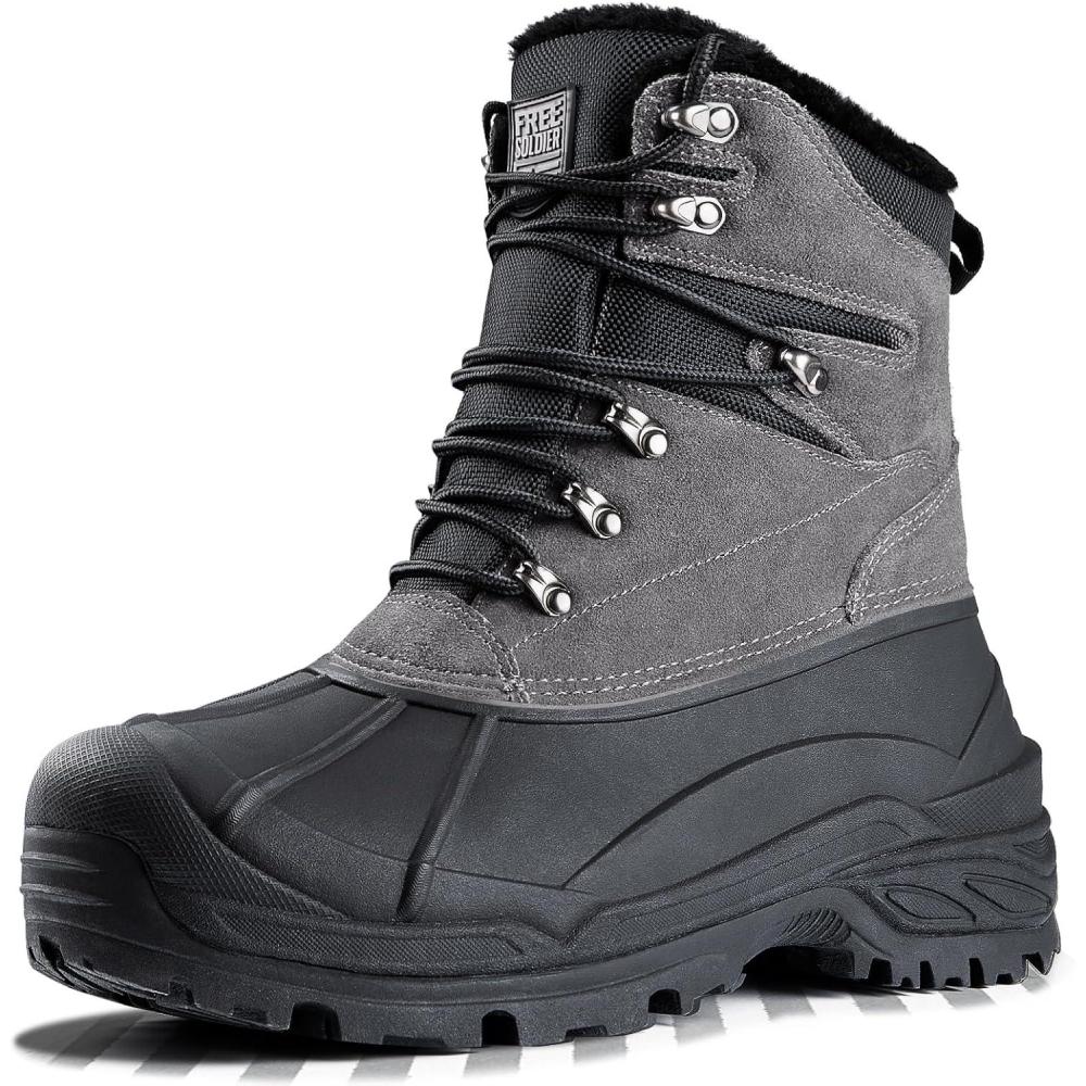 imageFREE SOLDIER Mens Snow Winter Boots for Men Warm Fleece Lining Winter Ski Shoes Waterproof Insulated BootiesGrey12