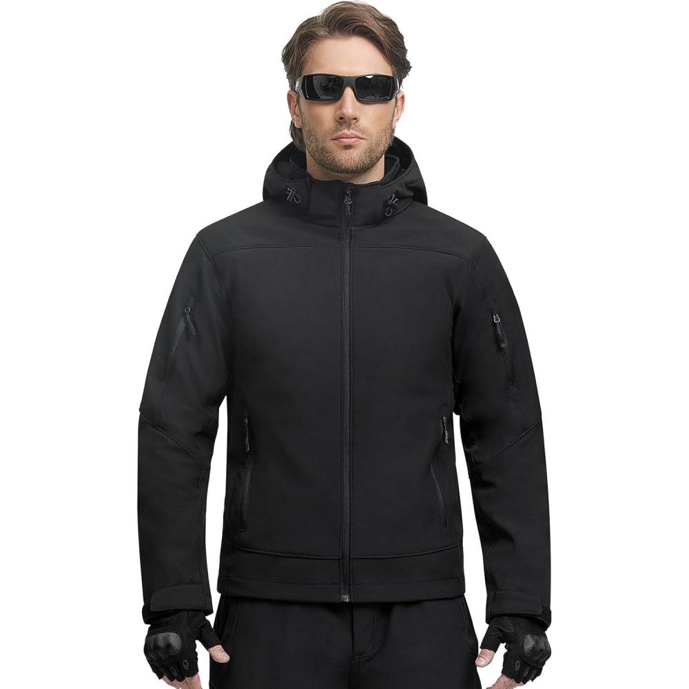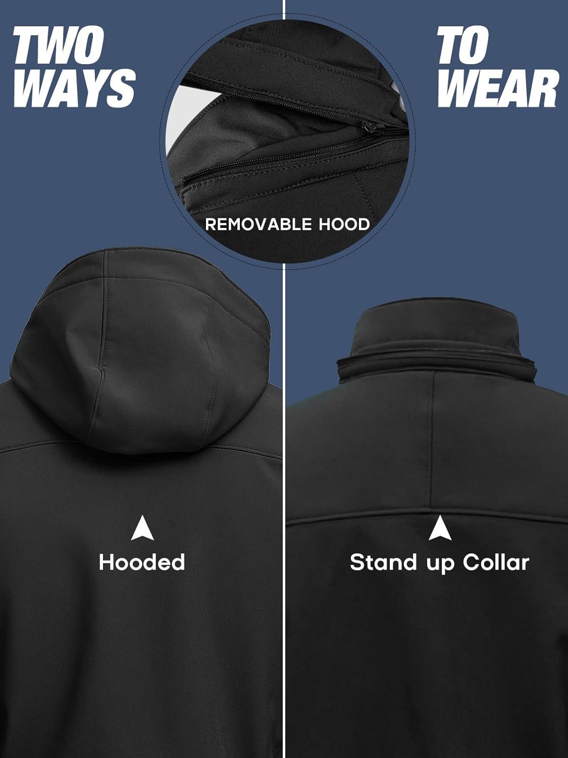Windproof Tactical Jacket: The elastic rope inside the hood surrounds the face, adjustable cuffs with hook and adjustable drawcord hem make this fleece jacket keep the wind out and keep you warm in winter. The design with a removable hood offers different options.