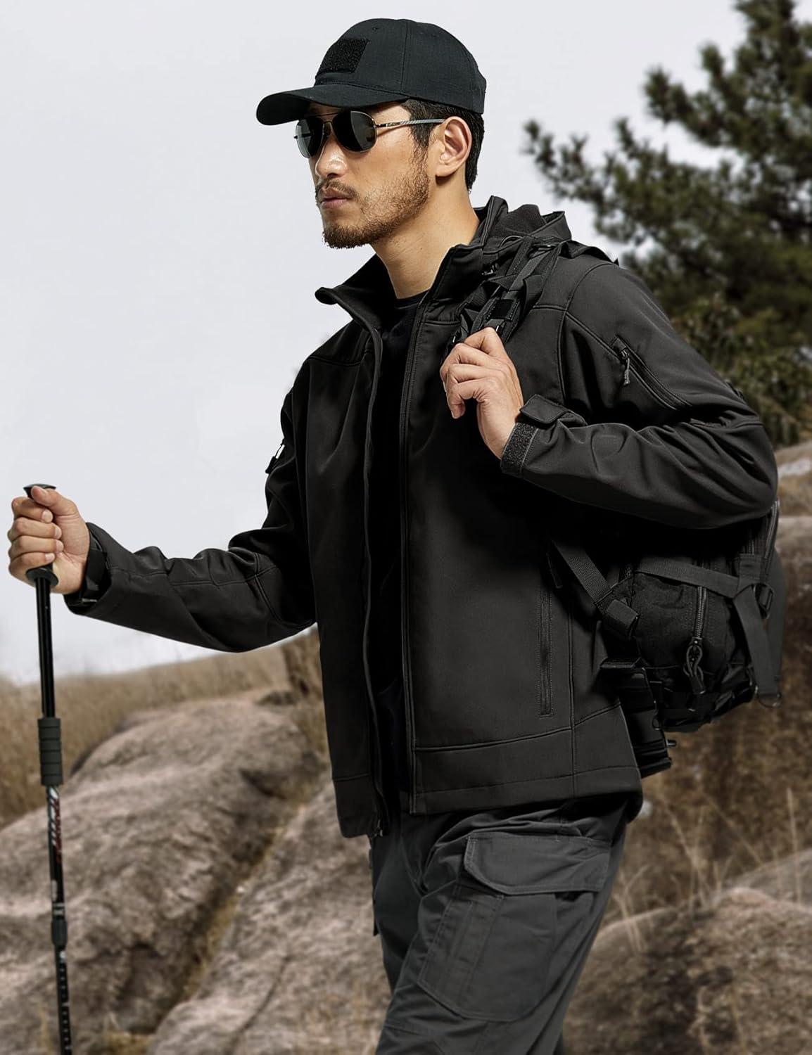 Warm Softshell Jacket: FREE SOLDIER Softshell Jacket is made of 95% Polyester 5% Spandex and 100% Polyester Thermal 8000mm Fleece Lined. Scratch-resistant Polyester fabric and stretch spandex are especially suitable for outdoor activities with extreme flexibility and comfort.