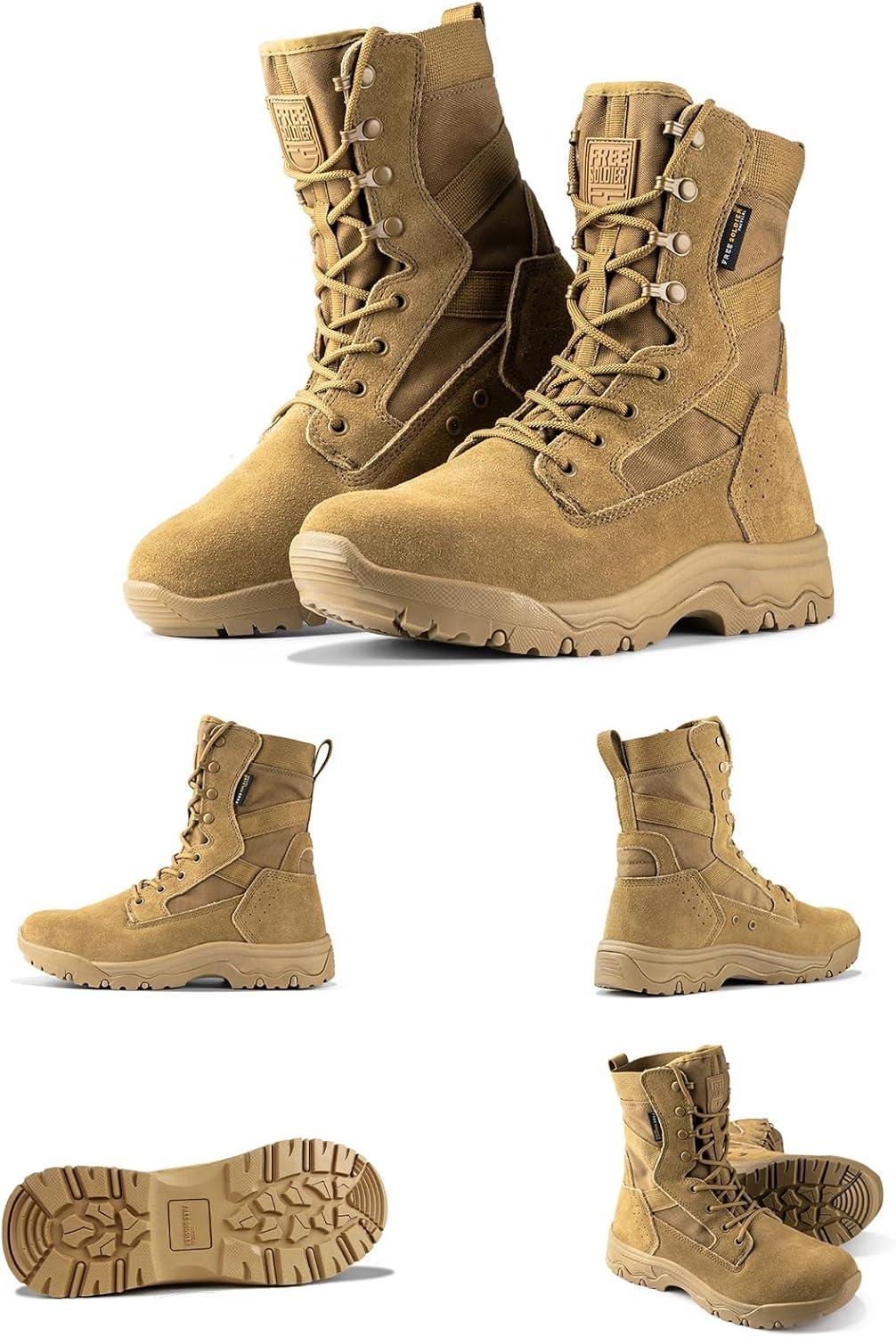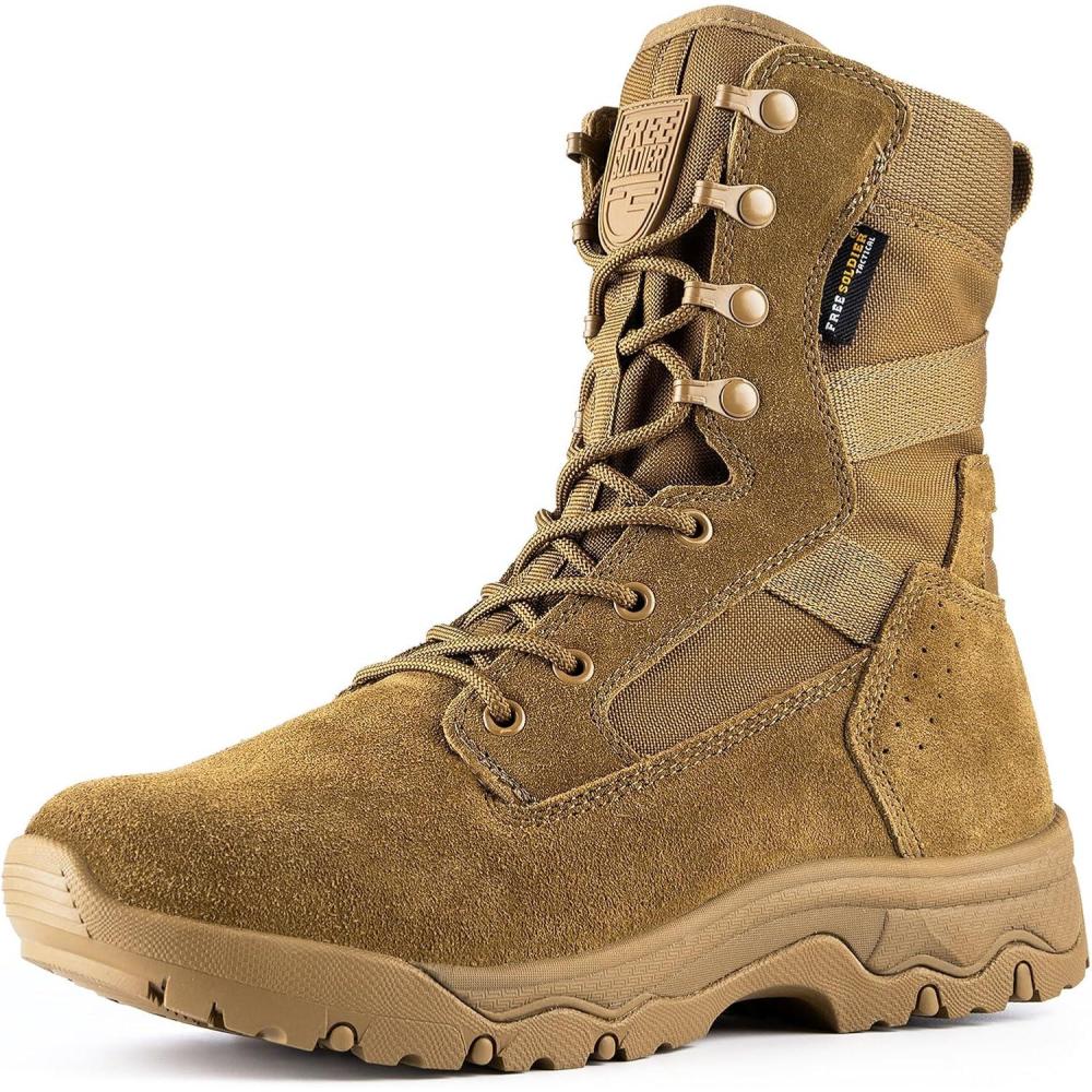 imageFREE SOLDIER Mens Tactical Boots 8 Inches Lightweight Combat Boots Durable Suede Leather Military Work Boot Desert BootBright Light Brown