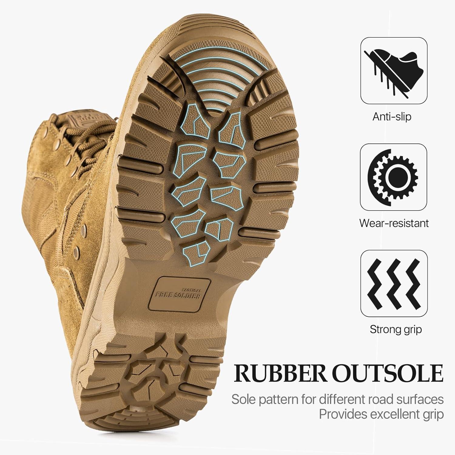 FREE SOLDIER Men's Tactical Boots 8 Inches Lightweight Combat Boots Durable Suede Leather Military Work Boot Desert Boot(Bright Light Brown)