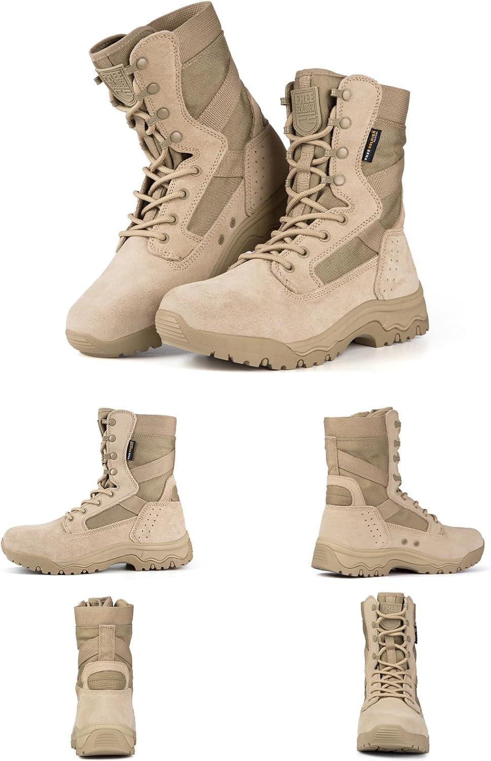 imageFREE SOLDIER Mens Tactical Boots 8 Inches Lightweight Combat Boots Durable Suede Leather Military Work Boot Desert BootBright Tan