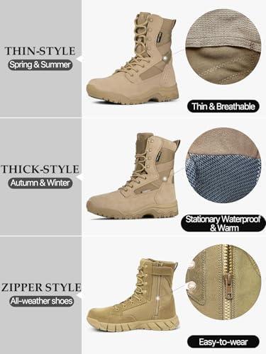 FREE SOLDIER Men’s Tactical Boots 8 Inches Lightweight Combat Boots Durable Suede Leather Military Work Boot Desert Boot(Bright Tan)