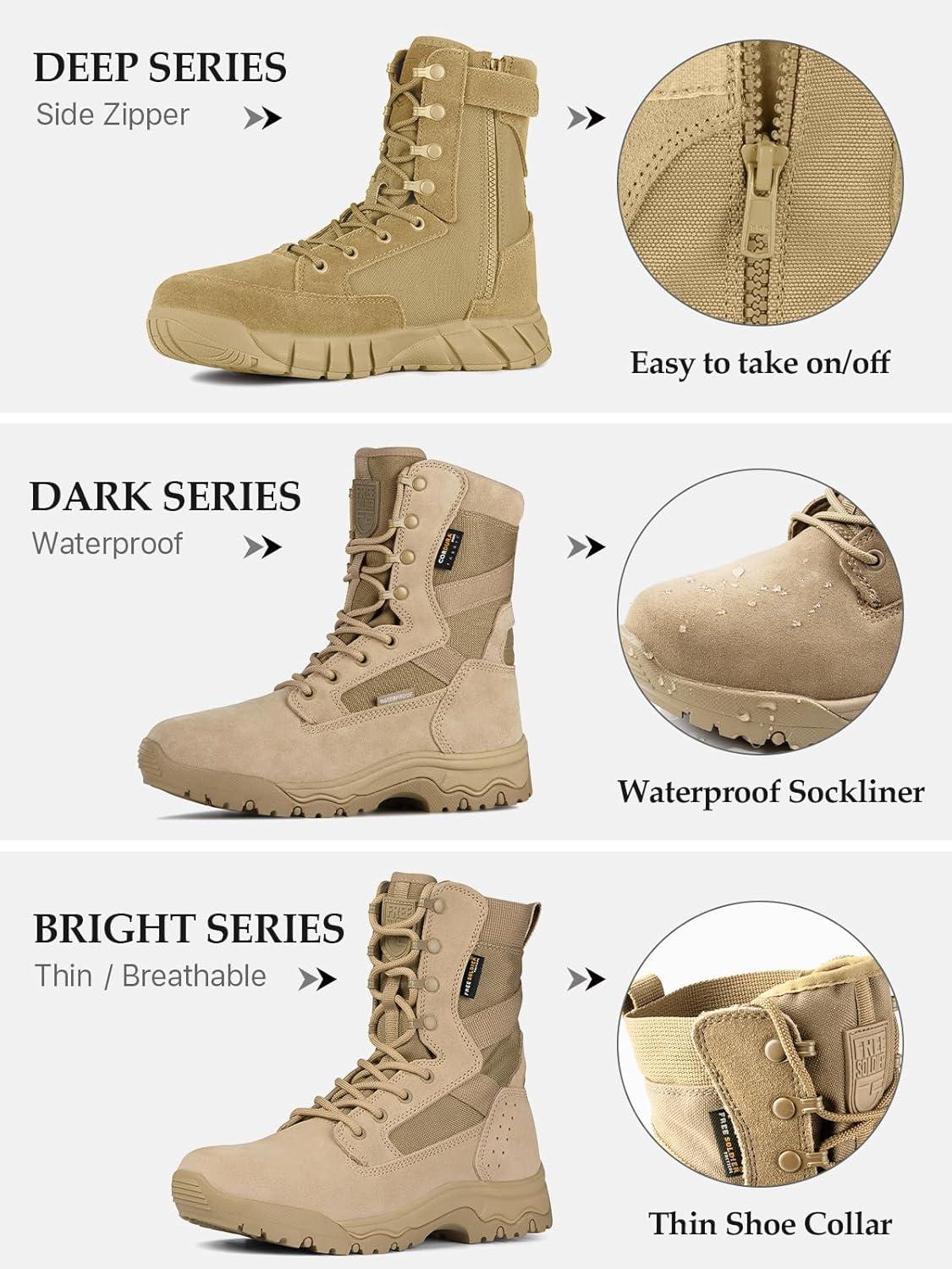 imageFREE SOLDIER Mens Tactical Boots 8 Inches Lightweight Combat Boots Durable Suede Leather Military Work Boot Desert BootBright Black