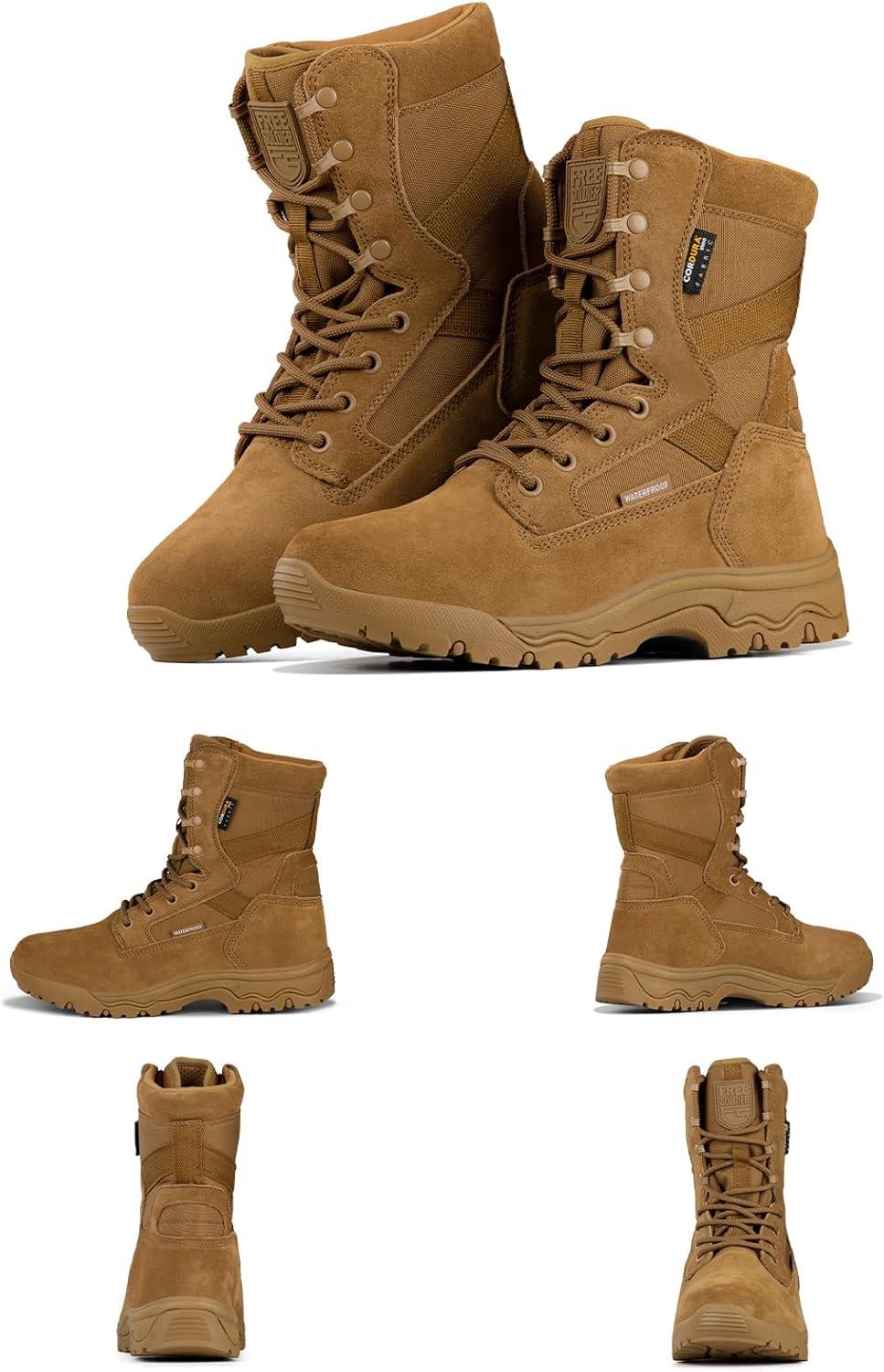 imageFREE SOLDIER Mens Tactical Boots 8 Inches Lightweight Combat Boots Durable Suede Leather Military Work Boot Desert BootDeep Black