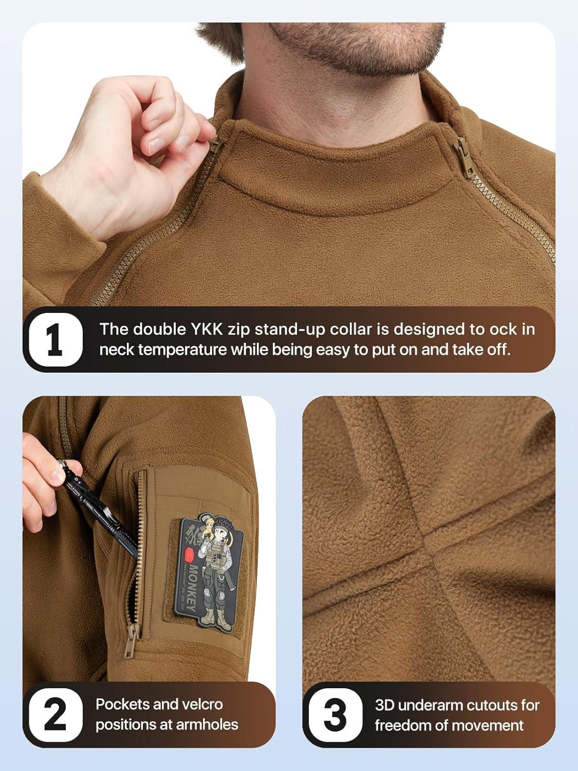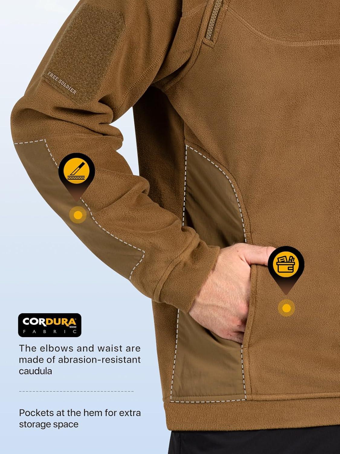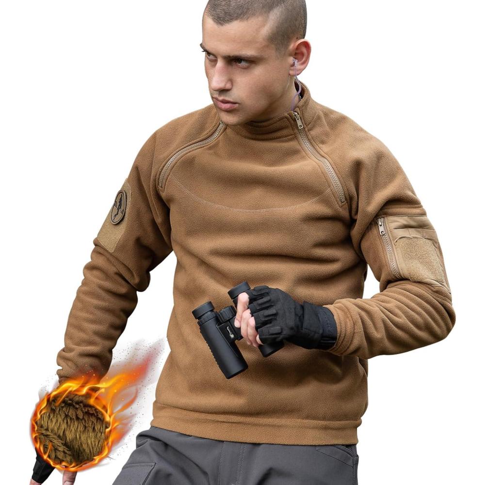 imageFREE SOLDIER Mens Tactical Fleece Lined Jacket Long Sleeve Crewneck Sweatshirts Pullover with Pockets Commando SweaterCoyote Brown