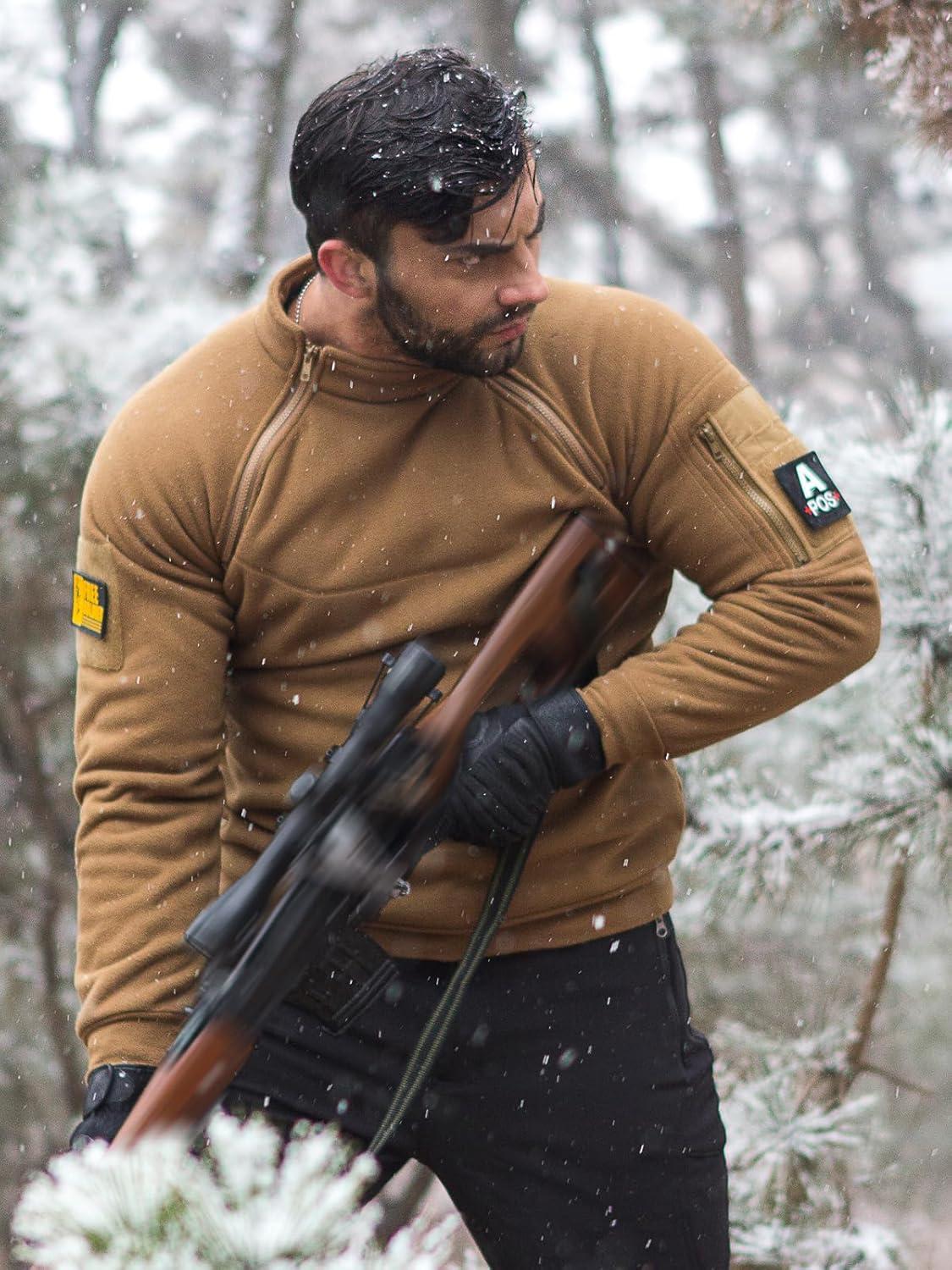 FREE SOLDIER Men's Tactical Fleece Lined Jacket Long Sleeve Crewneck Sweatshirts Pullover with Pockets Commando Sweater(Coyote Brown)