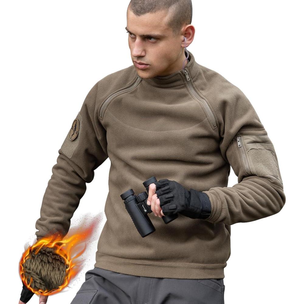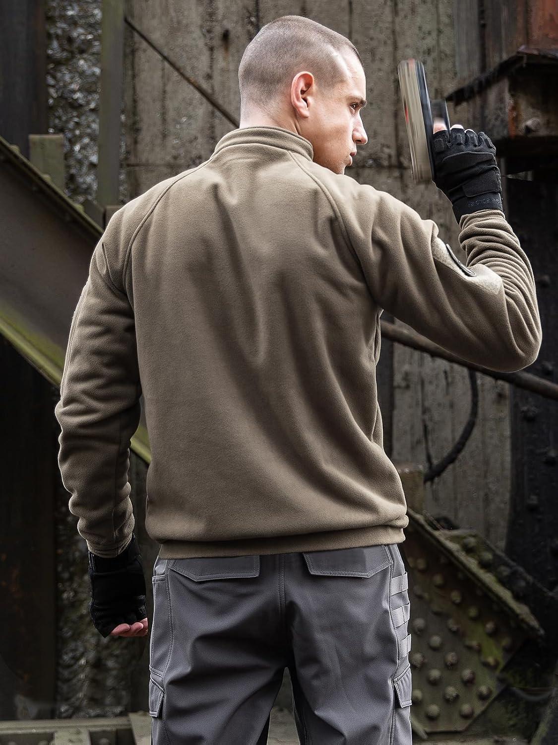 FREE SOLDIER Men’s Tactical Fleece Lined Jacket Long Sleeve Crewneck Sweatshirts Pullover with Pockets Commando Sweater(Moss Coyote)