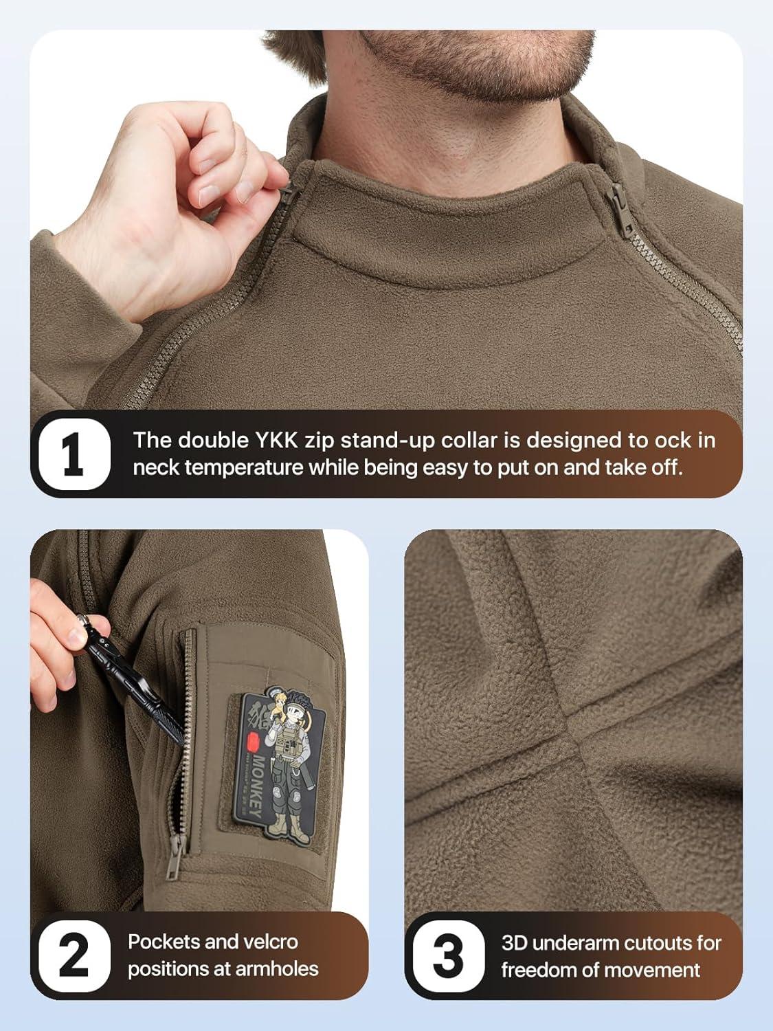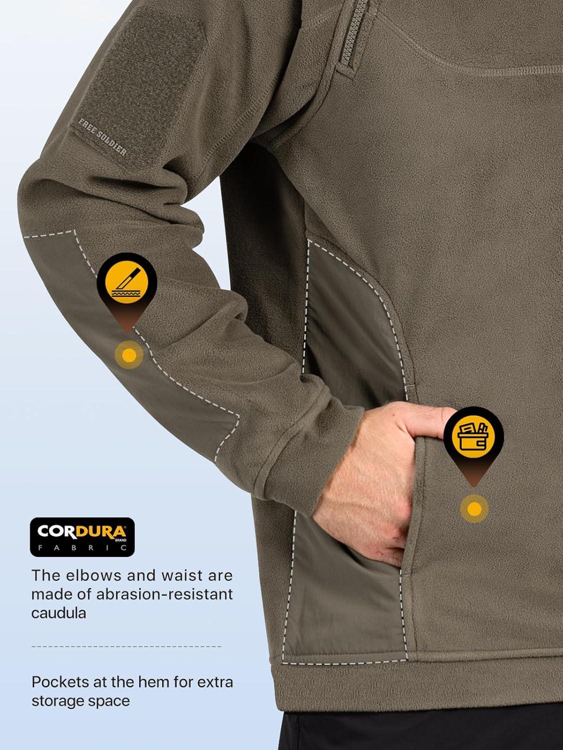imageFREE SOLDIER Mens Tactical Fleece Lined Jacket Long Sleeve Crewneck Sweatshirts Pullover with Pockets Commando SweaterMoss Coyote