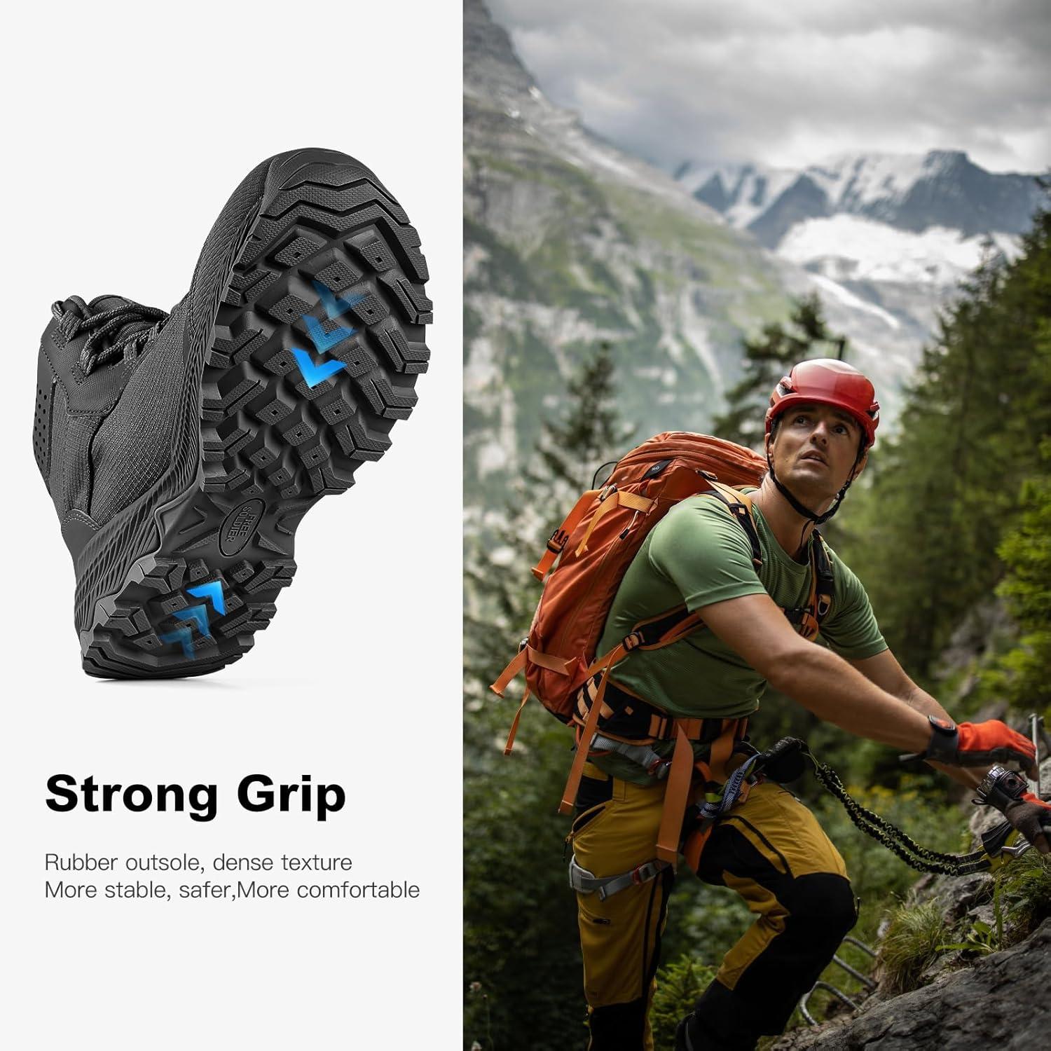 COMPREHENSIVE PROTECTION & SHOCK ABSORPTION – Feature 3D pressure embossing designs on the toe and heel, which protect your feet from impacts and collisions during various activities. The strong support and ankle protection ensure your feet are safe and comfortable. The EVA midsole provides excellent cushioning and support for long-lasting comfort. Anti-slip shoelaces ensure a secure fit, while the integrated tongue design prevents dust, sand, and debris from entering the boots