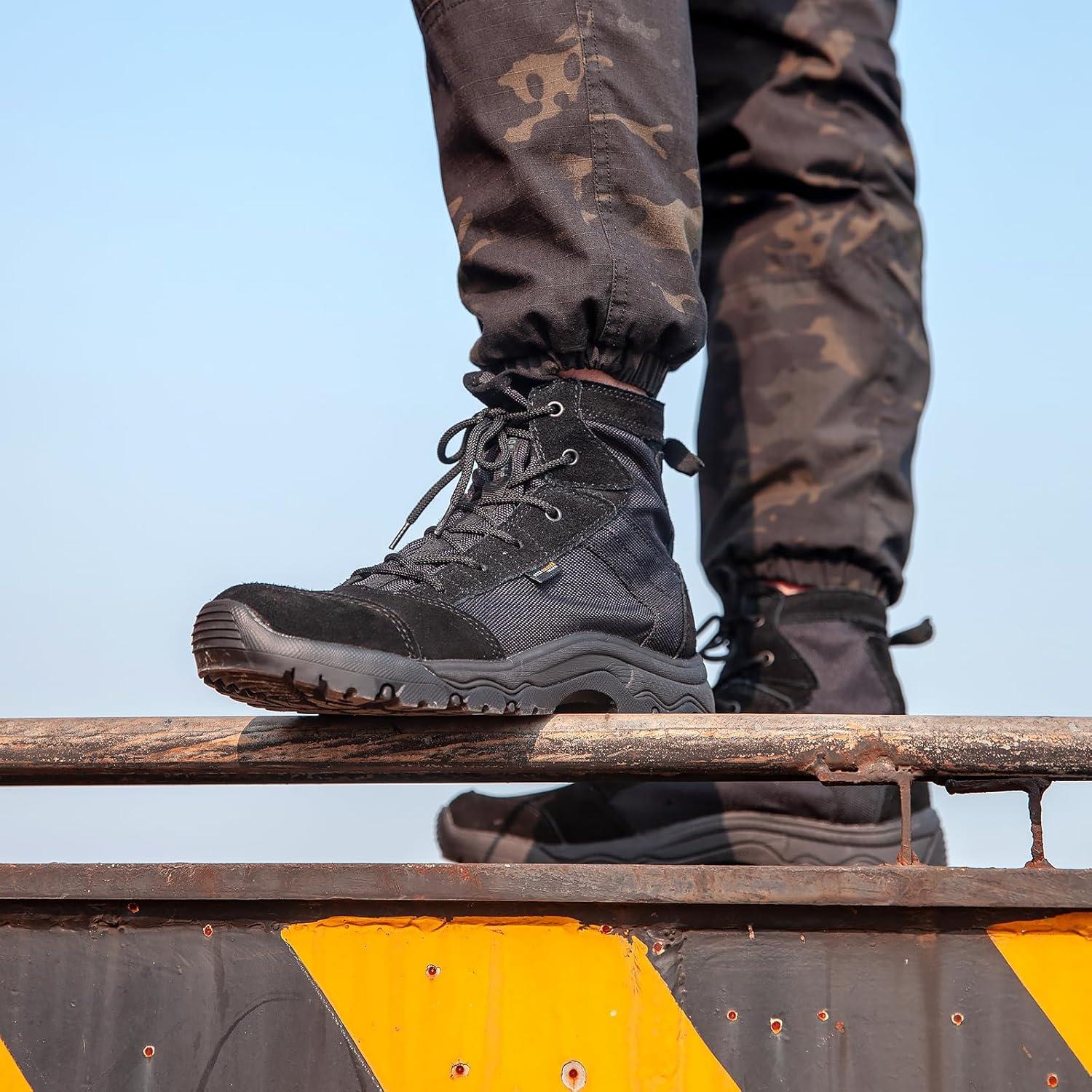 FREE SOLDIER Men's Tactical Hiking Boots Lightweight Comfortable Combat Work Boots 6 Inches(Black)