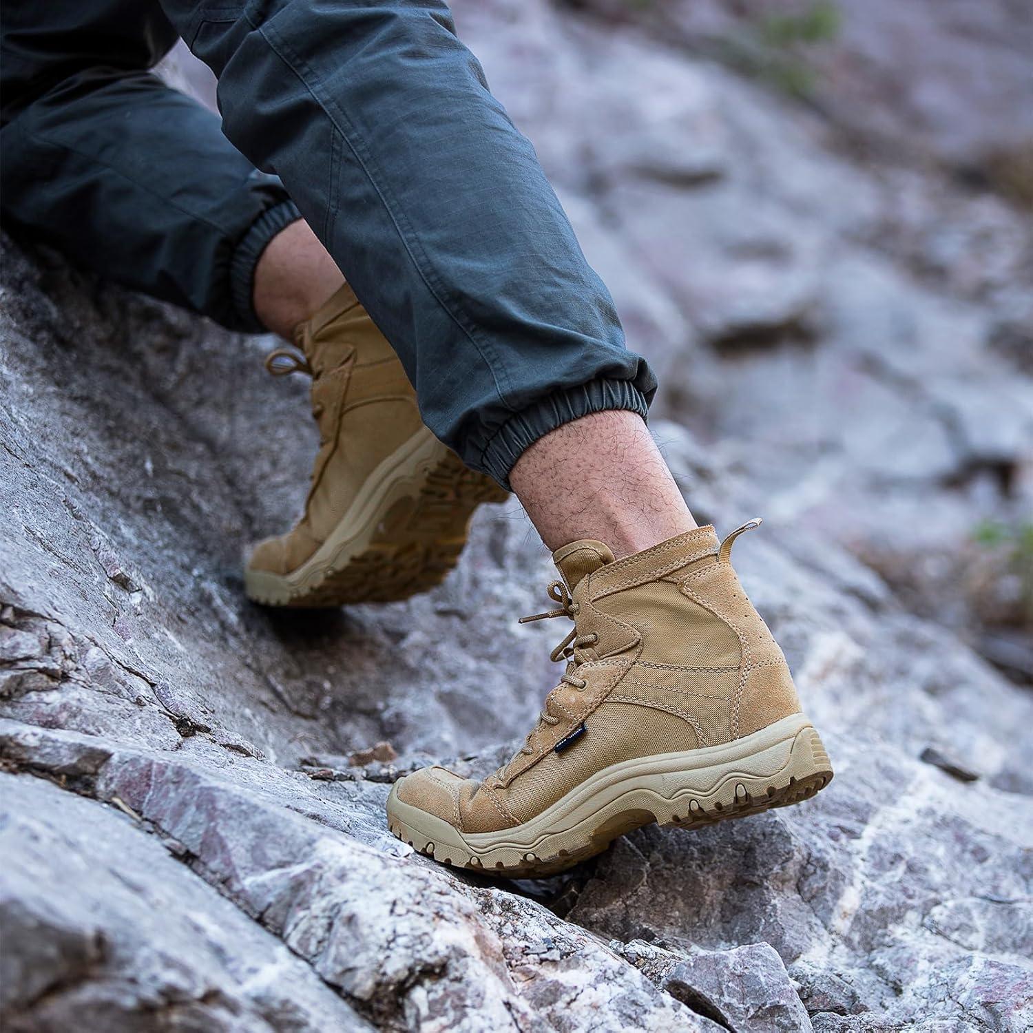 DURABLE & PROTECTIVE – These men's hiking boots are made of suede leather, durable and scratch-resistant. EVA midsole, lightweight and flexible, supply excellent cushioning for work or hiking. All terrain outsole, great grip with geometrical pattern design, non-slip work boots for men. Strengthened toe cap and heel provide full protection, anti-collision, and ankle support. Suit for tactical, military, combat, hunting, motorcycle, and airsoft boots