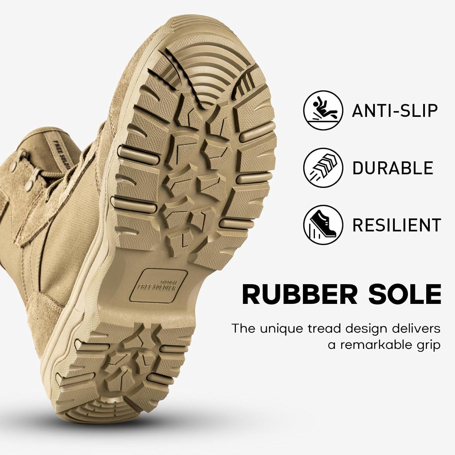 FREE SOLDIER Men's Tactical Hiking Boots Lightweight Comfortable Combat Work Boots 6 Inches(Tan)