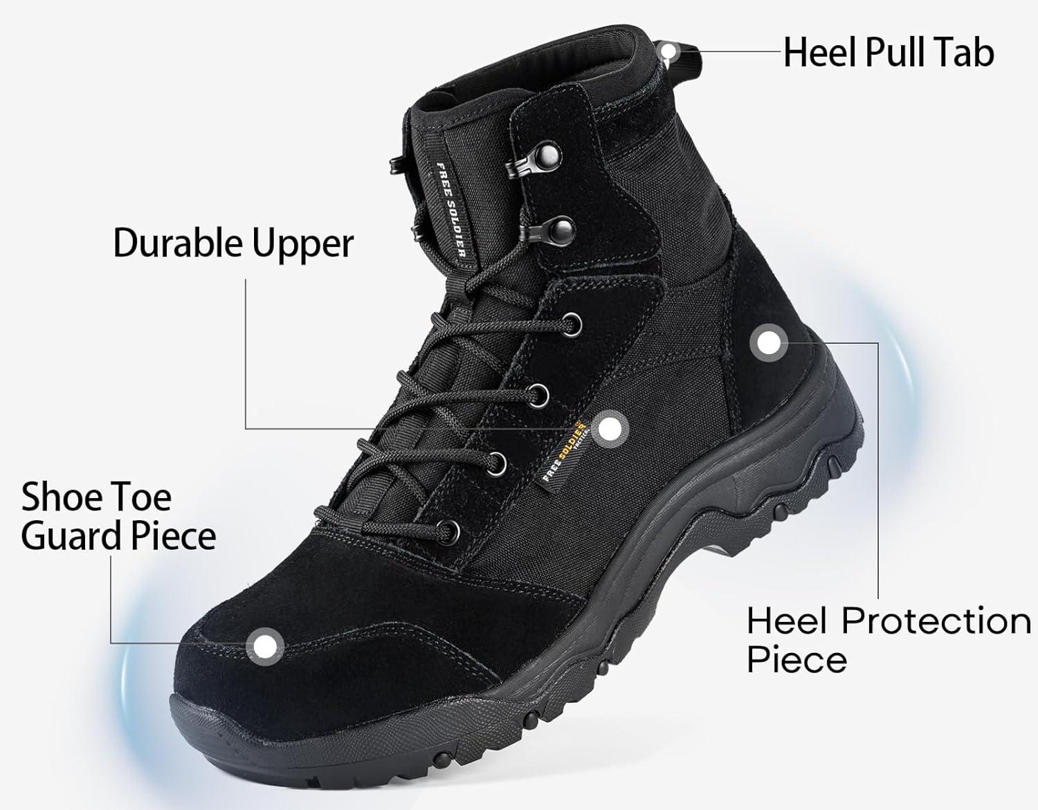 FREE SOLDIER Men's Tactical Hiking Boots Lightweight Comfortable Work Boots Combat Boots 6 Inches(Black 9)