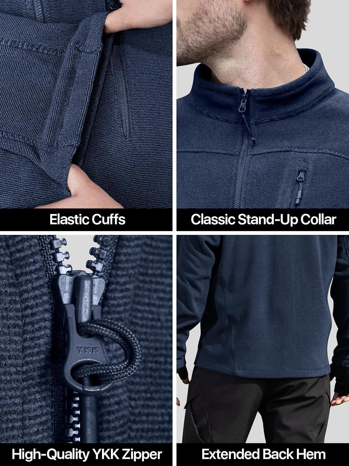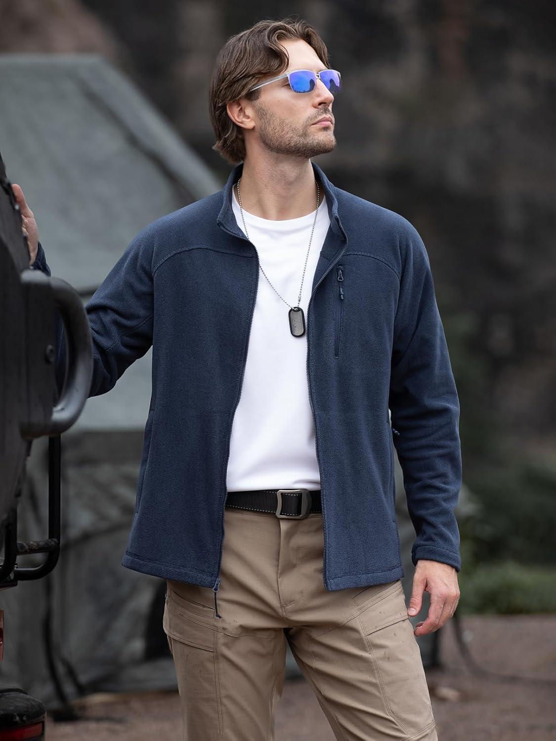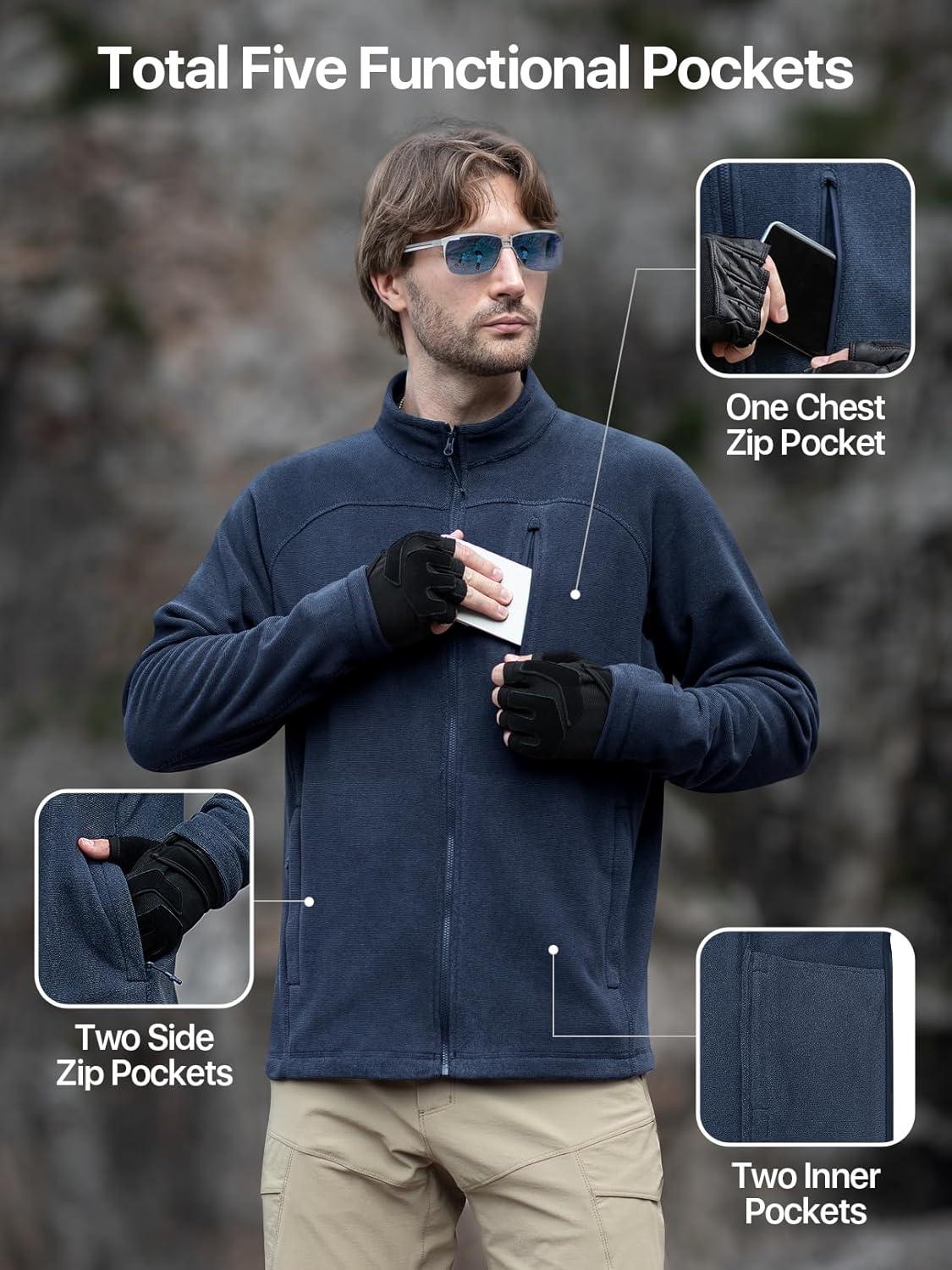 FREE SOLDIER Men’s Tactical Long Sleeve Fleece Jacket Full Zip Up Coat Lightweight Fleece Jacket With Pockets(Misty Blue)