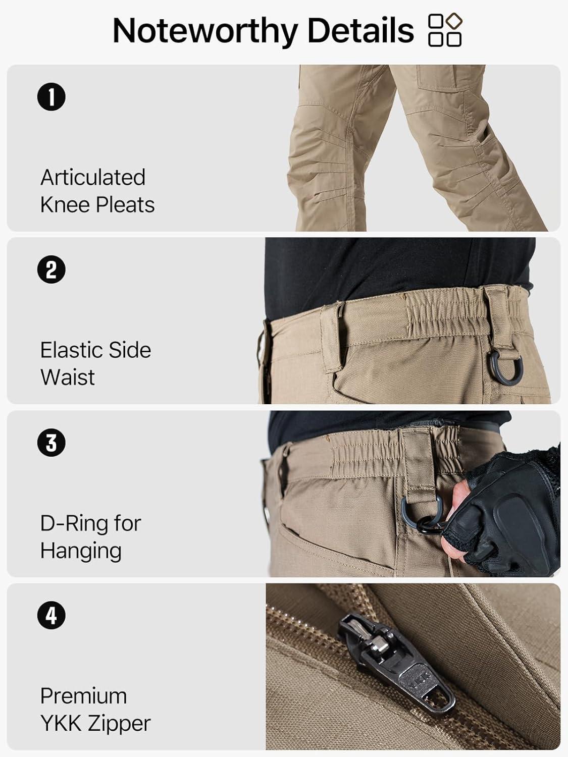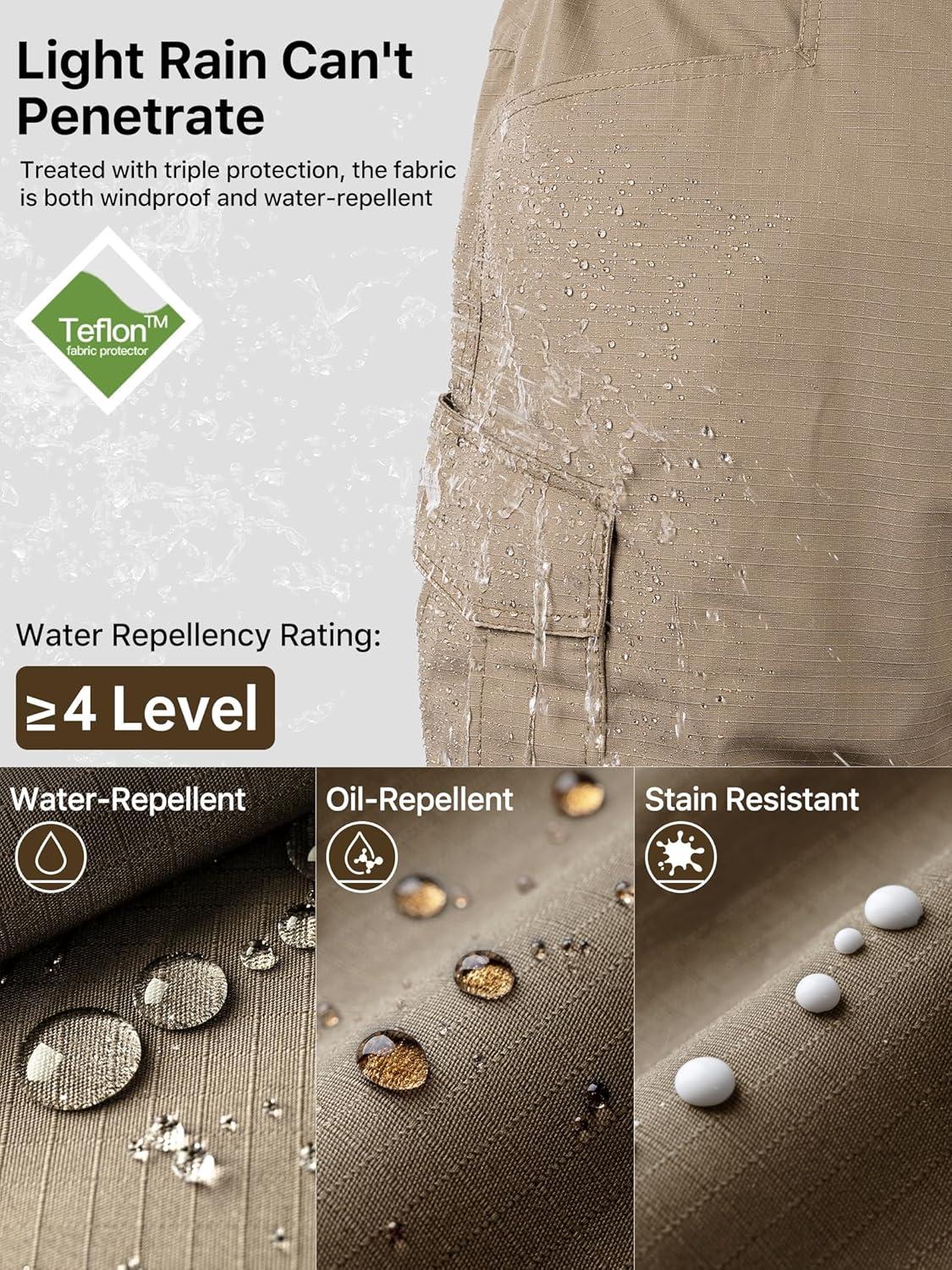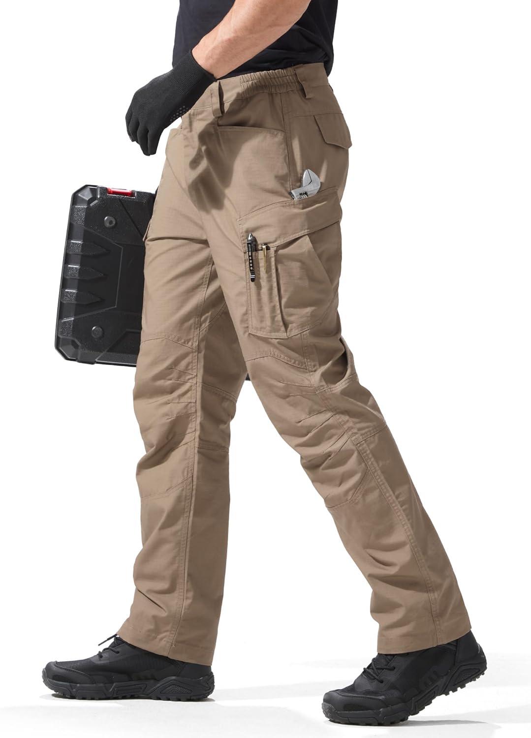 FREE SOLDIER Men’s Tactical Pants Water Resistant Ripstop Cargo Work Lightweight EDC Hiking Pants with Multi Pockets(Khaki)