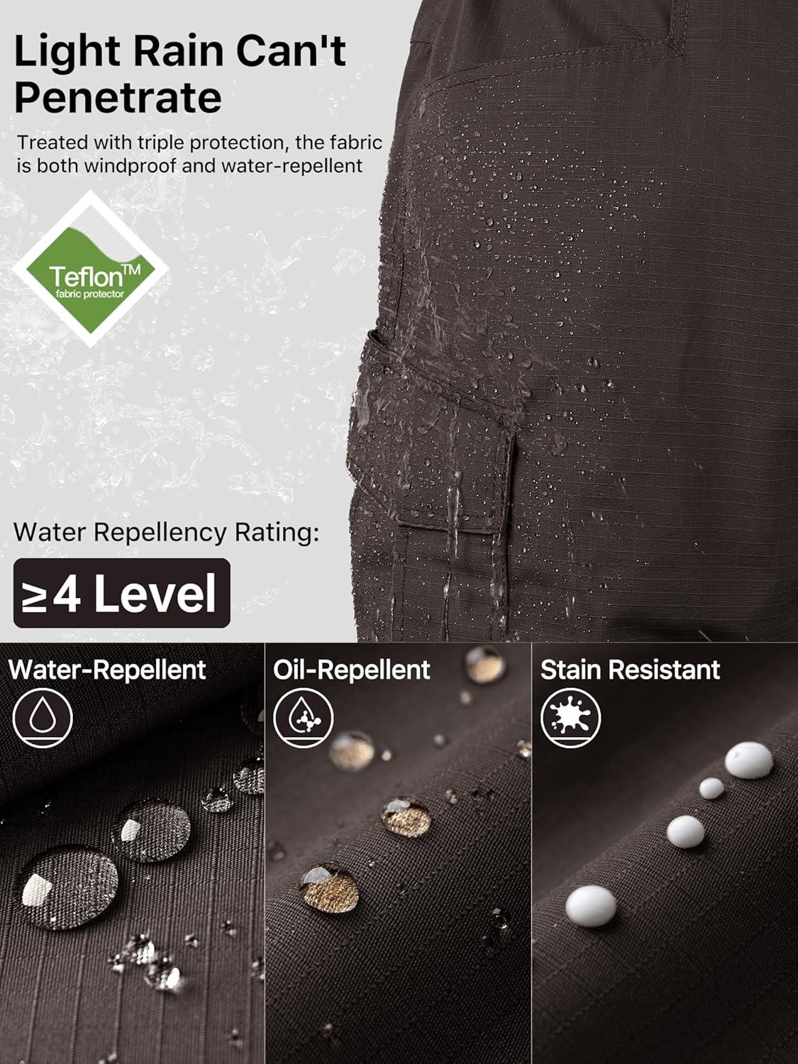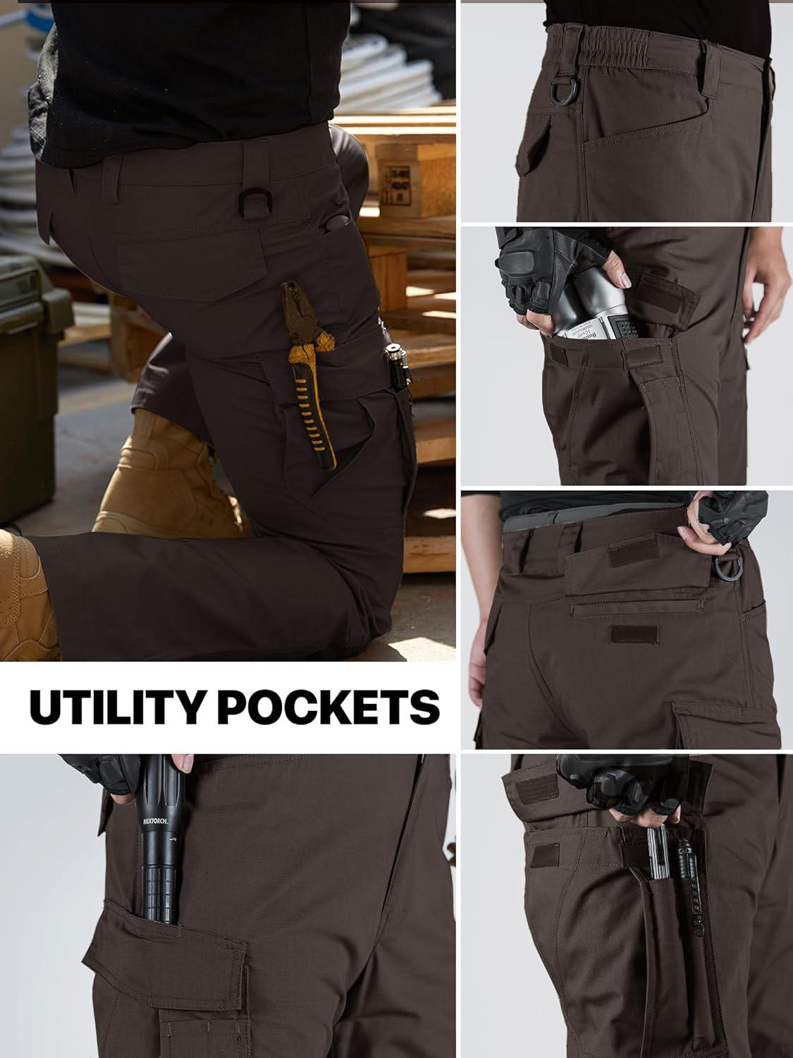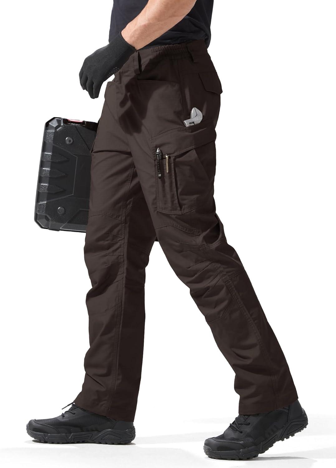 FREE SOLDIER Men's Tactical Pants Water Resistant Ripstop Cargo Work Lightweight EDC Hiking Pants with Multi Pockets(Coffee Brown)