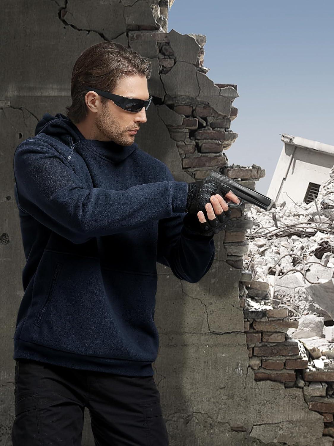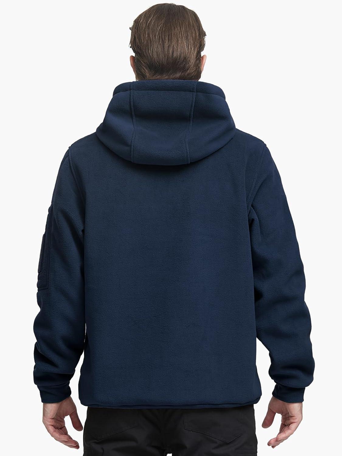 FREE SOLDIER Men’s Tactical Winter Fleece Pullover Hoodie Warm Long Fleece lined Hooded Sweatshirt(Navy Blue)