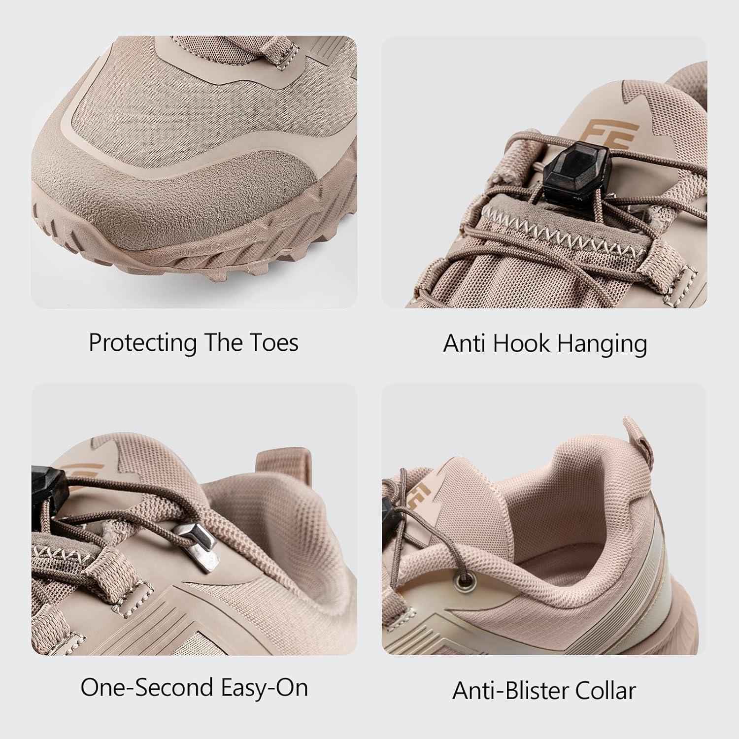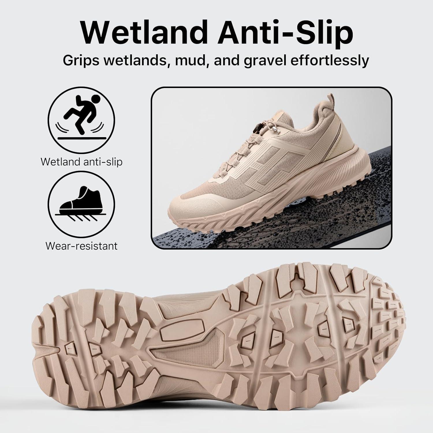 FREE SOLDIER Men’s Trail Running Hiking Tactical Shoes – Breathable Lightweight Non-Slip Outdoor Sneakers for Walking Gym Backpacking Athletic Shoes(Beige)