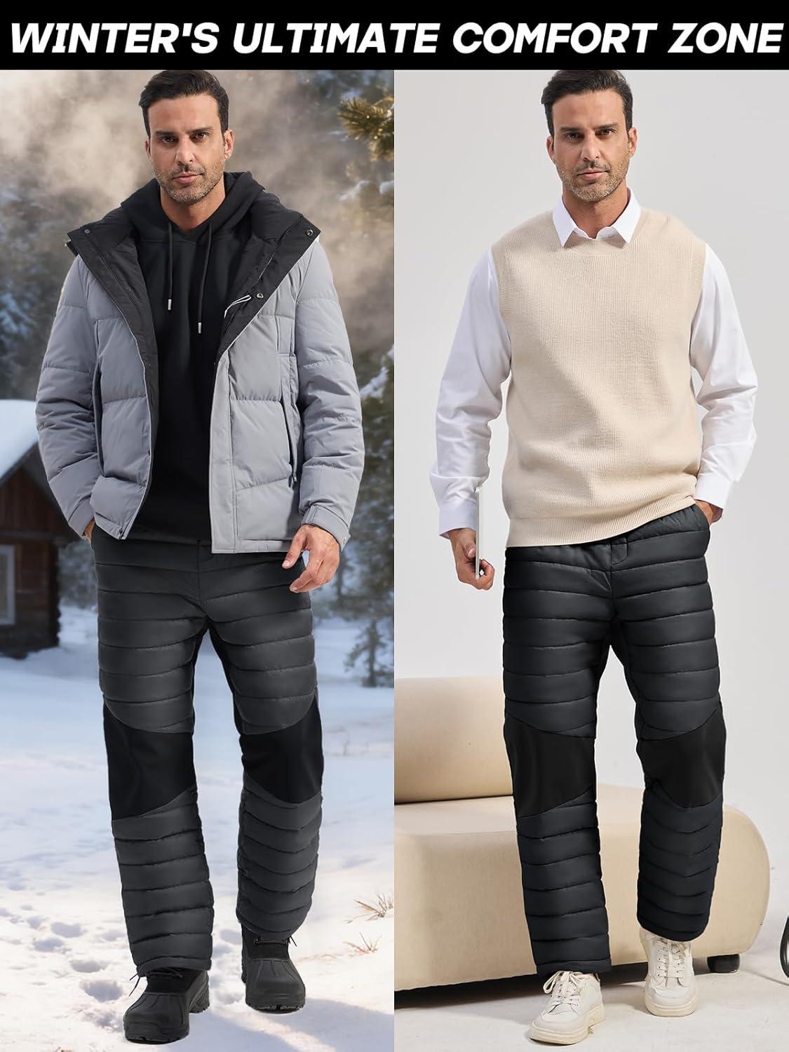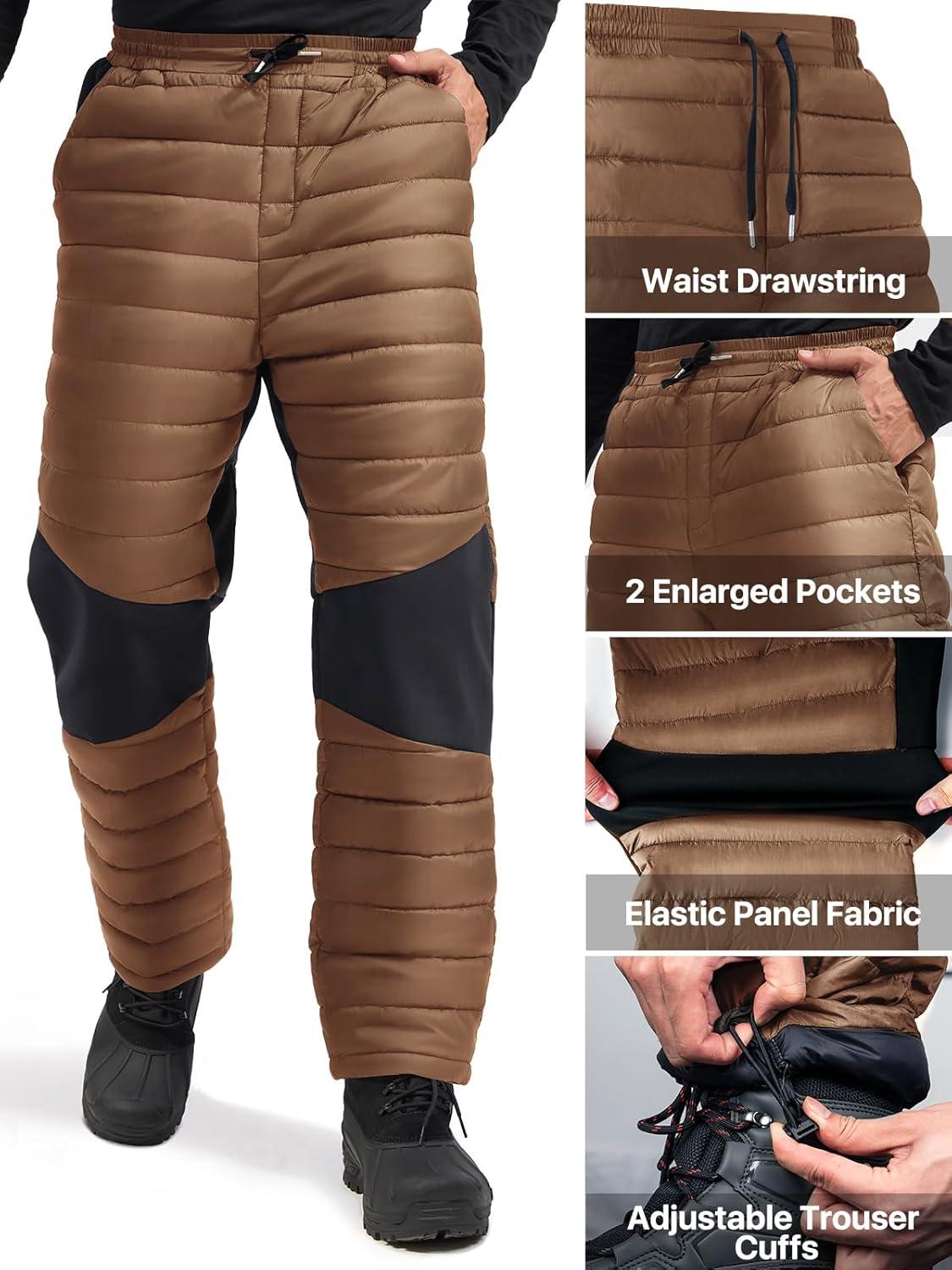 imageFREE SOLDIER Mens Warm Utility Puffy Quilted Insulated Pants Windproof Winter Pants Small Brown