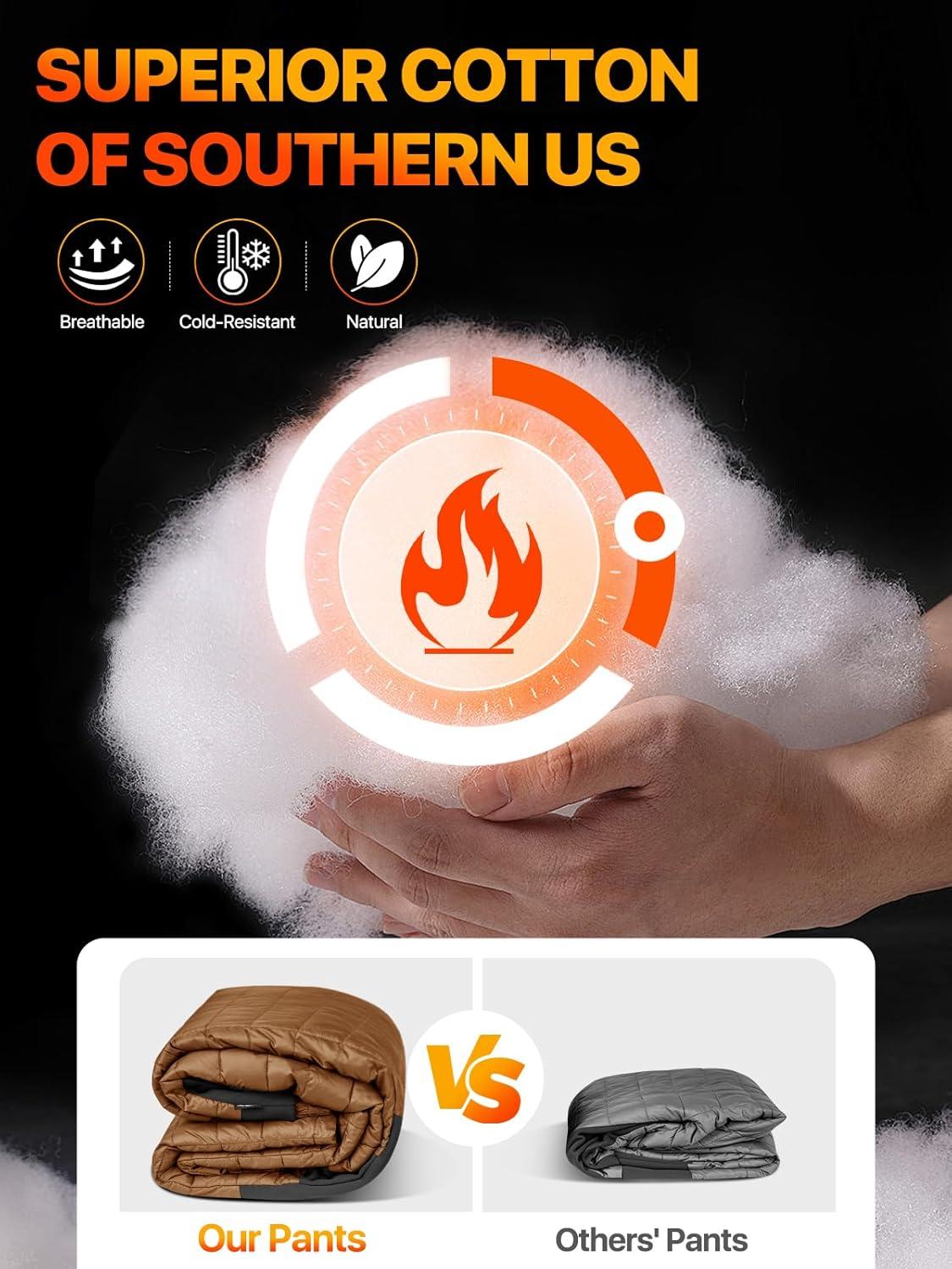 FREE SOLDIER Men's Warm Utility Puffy Quilted Insulated Pants Windproof Winter Pants (Small Brown)
