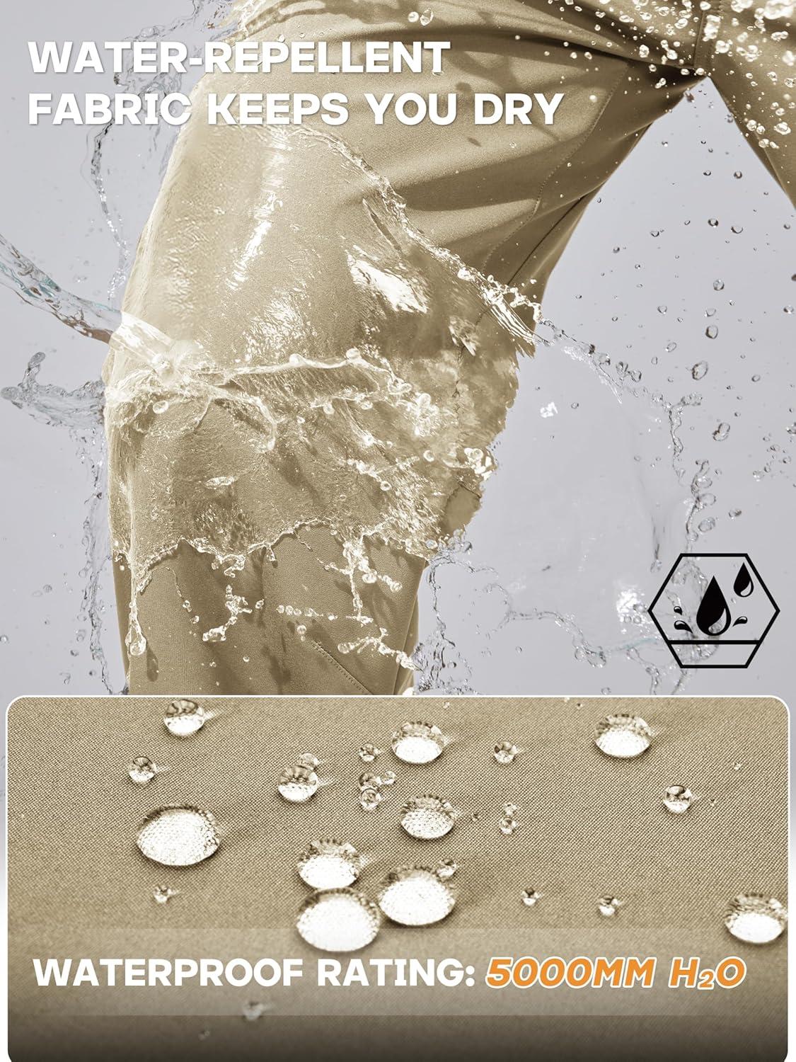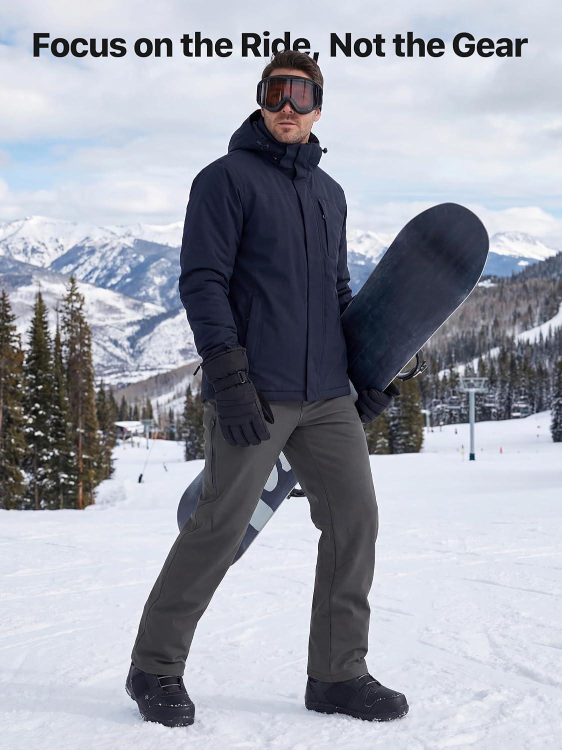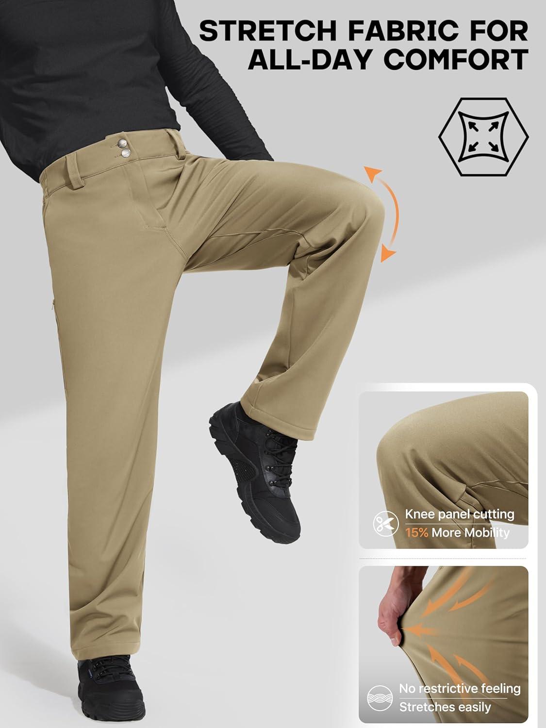 FREE SOLDIER Men’s Warm Windproof Winter Fleece Lined Pants Hiking Expandable-Waist Softshell Snow Ski Pants(Khaki)