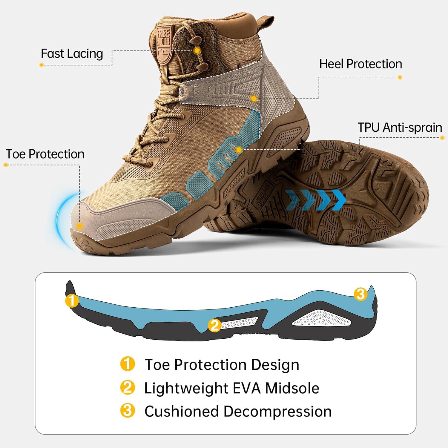 PERFECT INDOOR & OUTDOOR BOOTS FOR MEN – Designed for Spring Summer Autumn and Winter, offers all day comfort for outdoor activities and daily life. Ultralight style of hiking shoes men, also can be wore as combat boots men, winter work boots, motorcycle boots, army boots, duty boots, security boots, police boots, etc