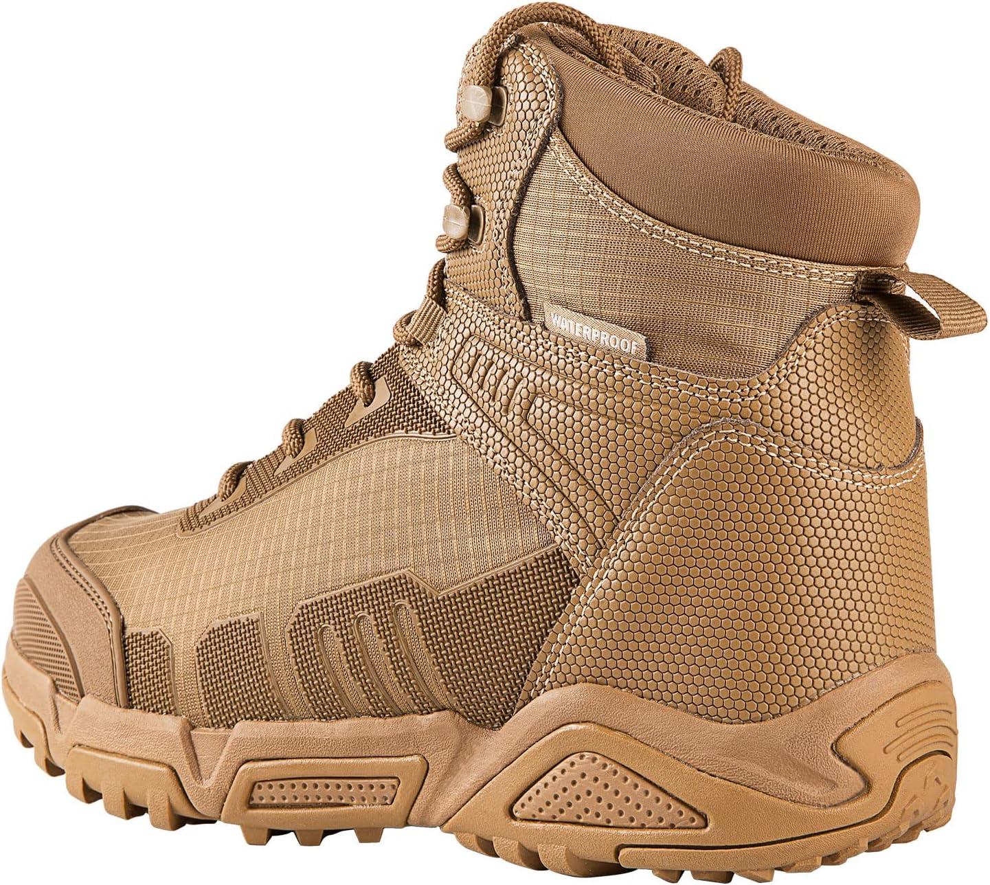 WATERPROOF & COMFORTABLE – Waterproof coating on outer surface, well keep water from entering this mens waterproof work boots. Waterproof lycra cloth lining, well keep feet dry and breathable. Gusseted tongue prevents pebbles, sand, dirt and other debris entering this tactical boots. Durable lace and quick fasten-up, convenient waterproof hiking boots for men